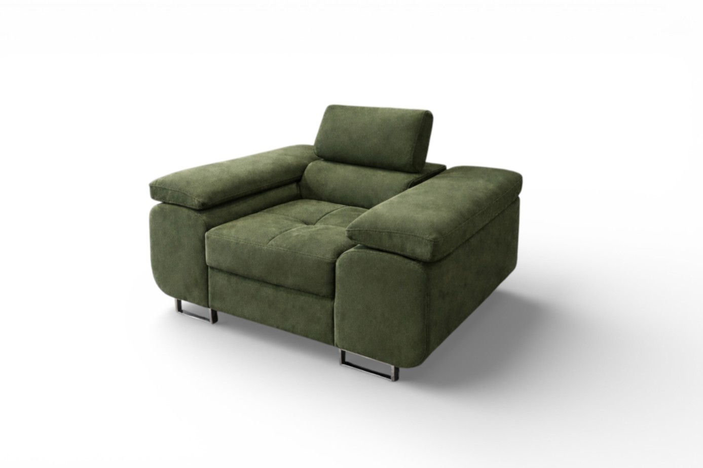 Fotel Avesta z regulowanym zagłówkiem oliwkowy welur