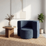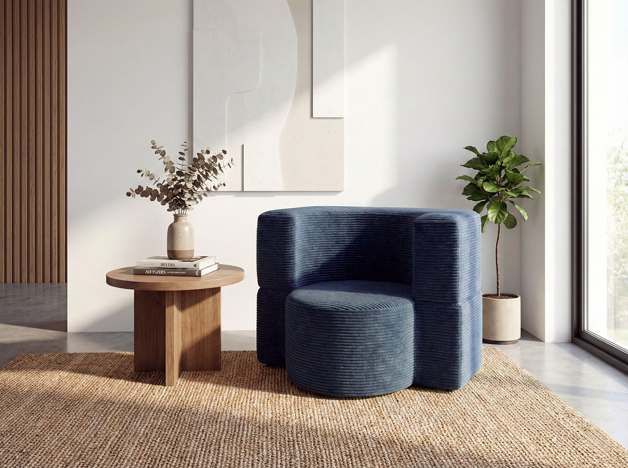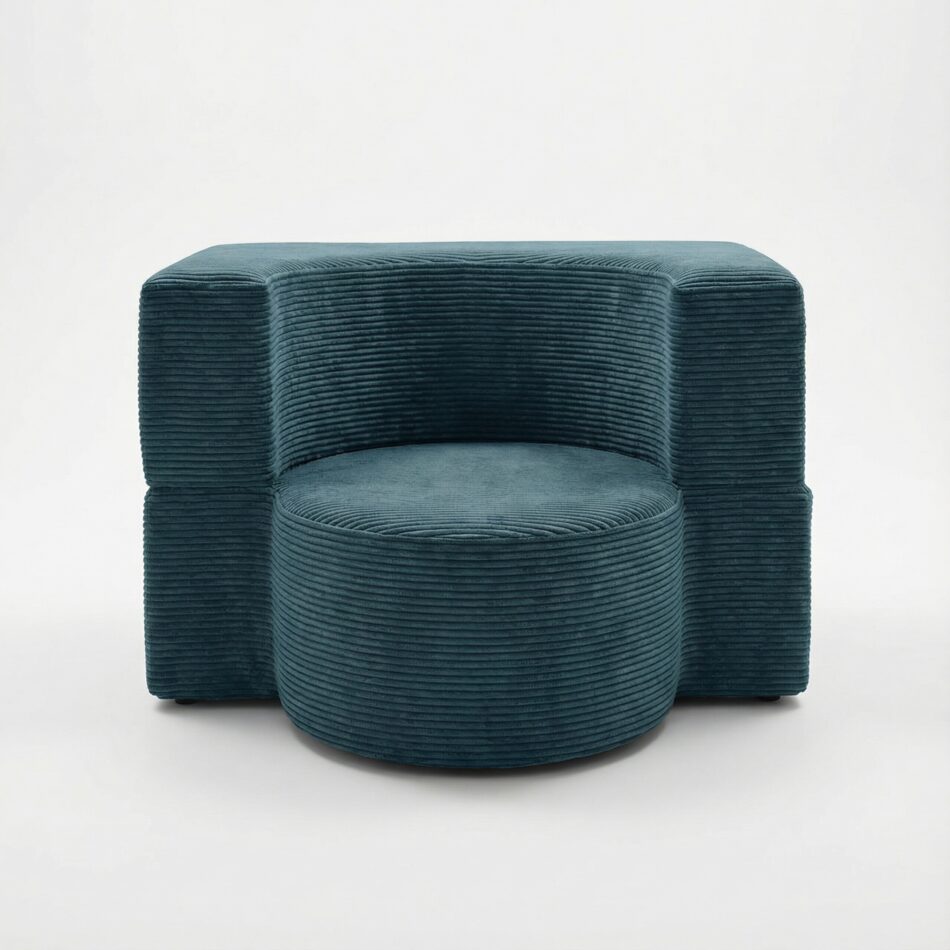 Fotel piankowy Arc to nowoczesna bryła o rzeźbiarskim charakterze, która łączy minimalistyczny design z wyjątkową wygodą. Jego obłe kształty zostały podkreślone grubą, mięsistą tkaniną sztruksową, która nadaje wnętrzu przytulności i szlachetnego wyrazu. Dzięki swojej formie fotel nie tylko stanowi wygodne miejsce do odpoczynku, ale jest też wyrazistym elementem dekoracyjnym.