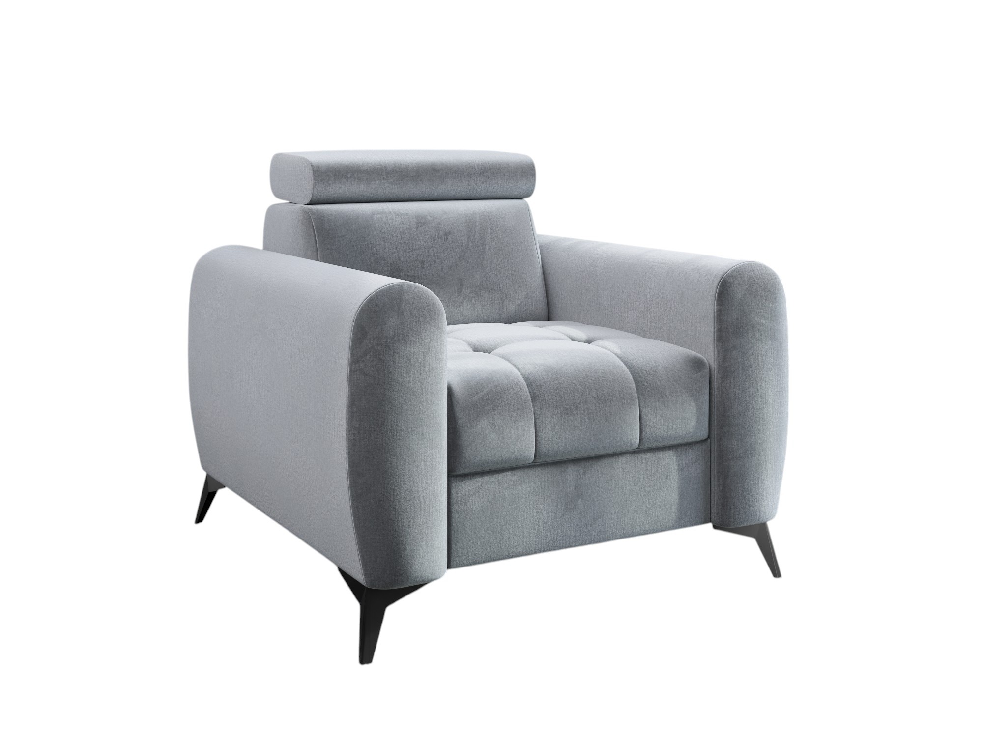 Oto szary fotel Bjorn, urzekający nowoczesną formą i miękkim welurem.