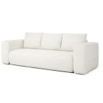 Jej prosty, nowoczesny kształt doskonale pasuje do wnętrz w stylu boho oraz minimalistycznym. Ciepły, kremowy odcień tapicerki rozjaśnia pomieszczenie. Wnosi do niego atmosferę spokoju i naturalnej elegancji. Dlatego kanapa świetnie komponuje się z drewnianymi meblami, zielenią roślin i stonowanymi kolorami ziemi. Co ważne, jej tył został w całości obity tkaniną. Pozwala to na ustawienie mebla w dowolnym miejscu, nawet na środku pokoju.