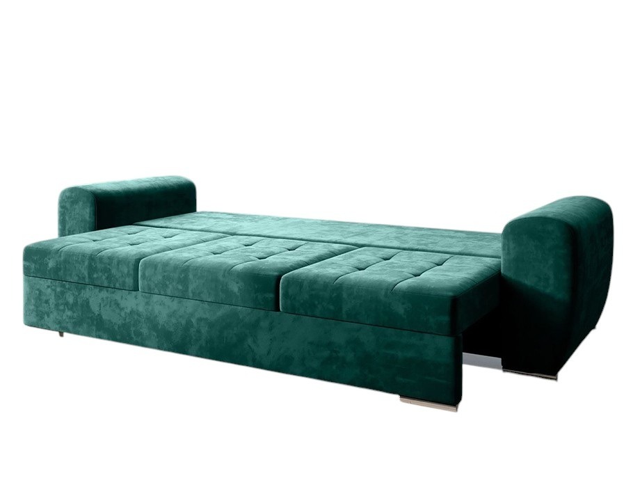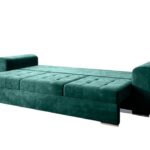 Kanapa Bari jest także wyjątkowo praktyczna. Wyposażono ją w funkcję spania, którą można uzyskać w kilka chwil. Rozkładanie za pomocą automatu DL jest intuicyjne i nie wymaga użycia siły. W ten sposób salon szybko zamienia się w przytulną sypialnię dla gości. Z kolei duży pojemnik na pościel pomaga utrzymać porządek w pokoju dziennym.