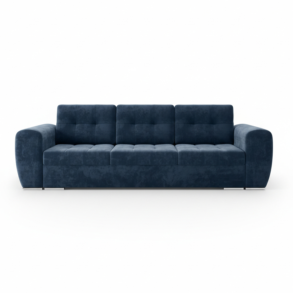 Granatowa kanapa Bari to propozycja o klasycznej formie, ubrana w przyjemny w dotyku welur.