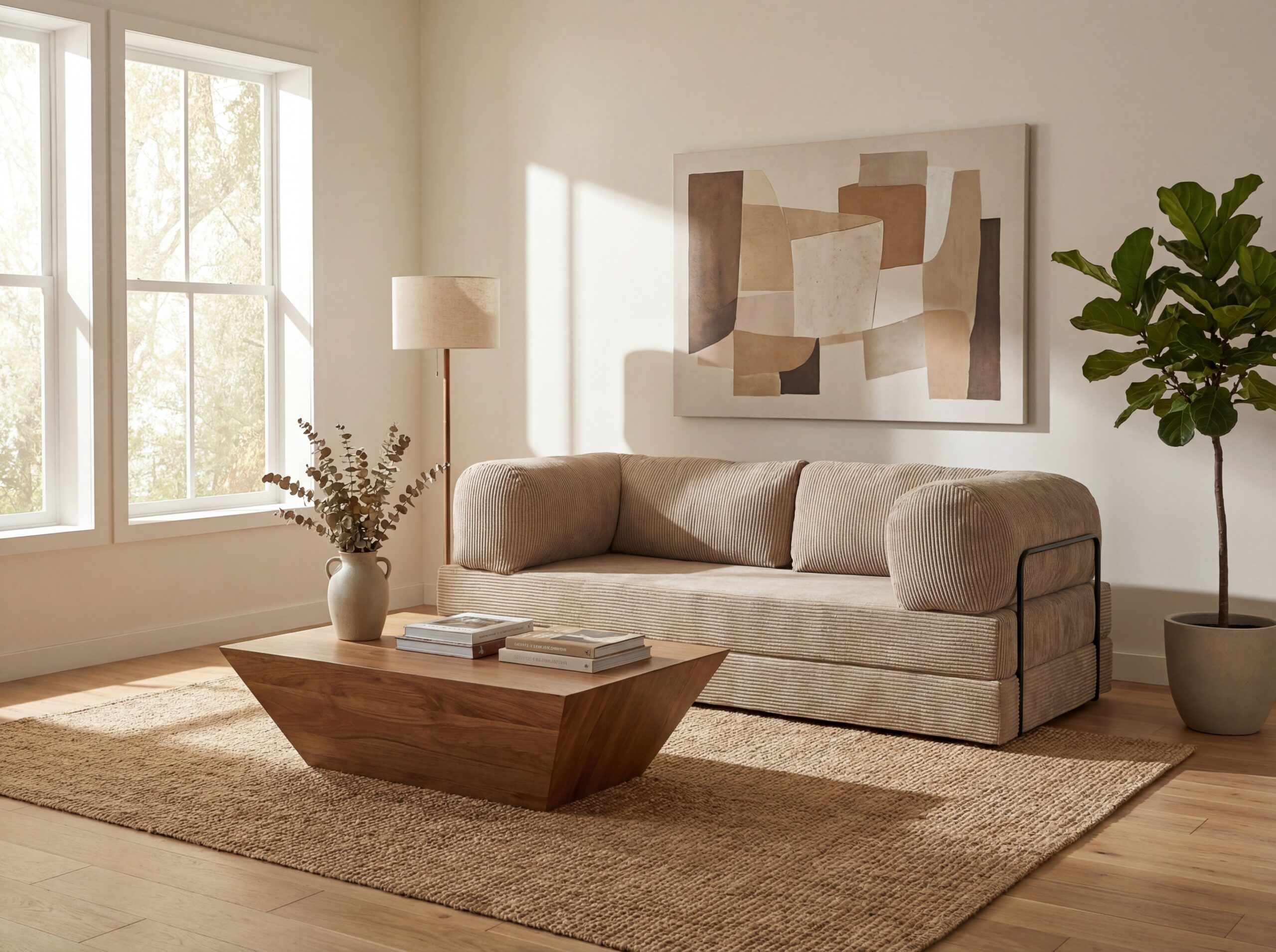 • Sztruks premium – miękki w dotyku, odporny na zużycie, w eleganckim beżu.