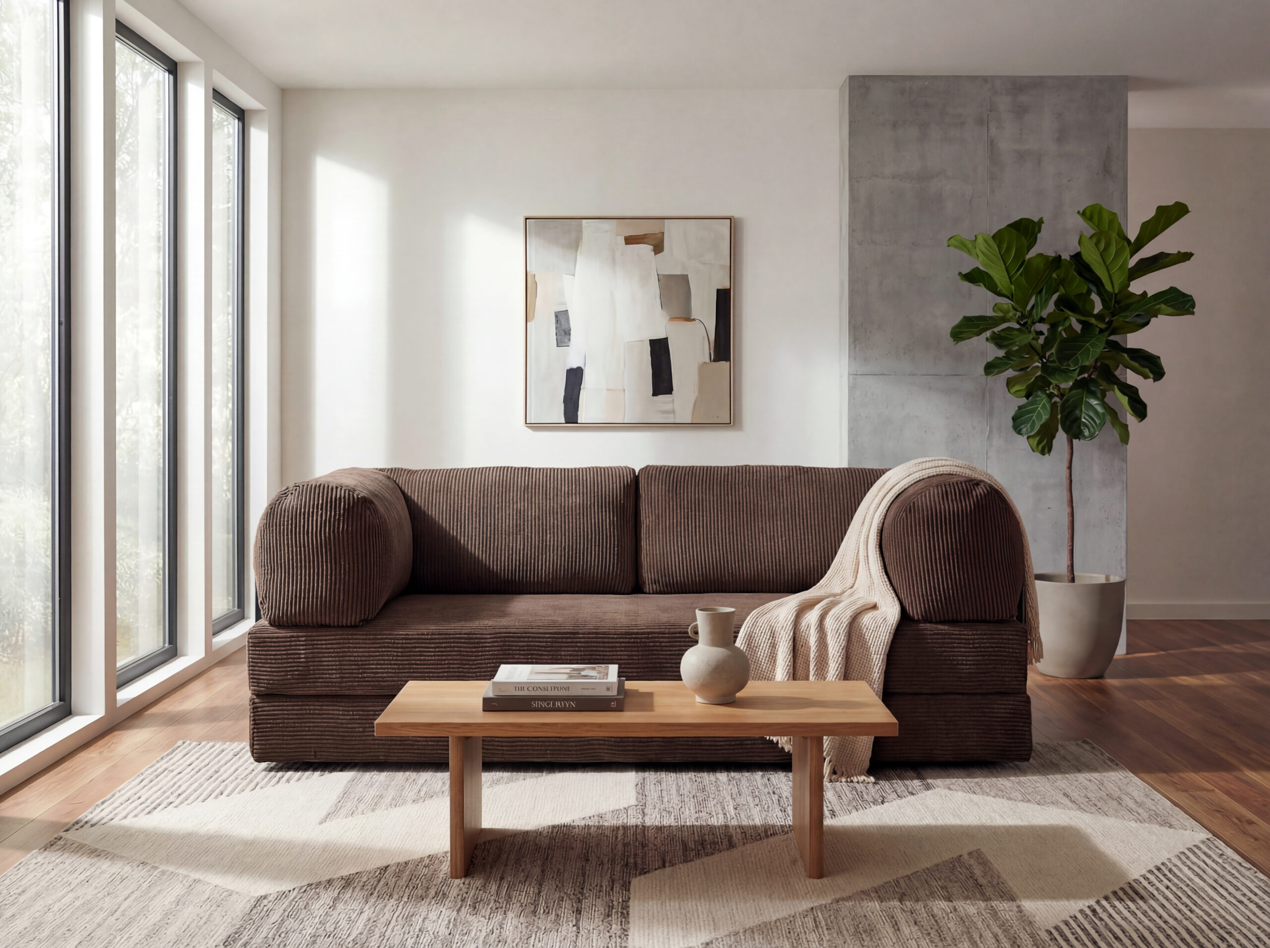 • Sztruks premium – miękki w dotyku, odporny na zużycie, w eleganckim brązie.