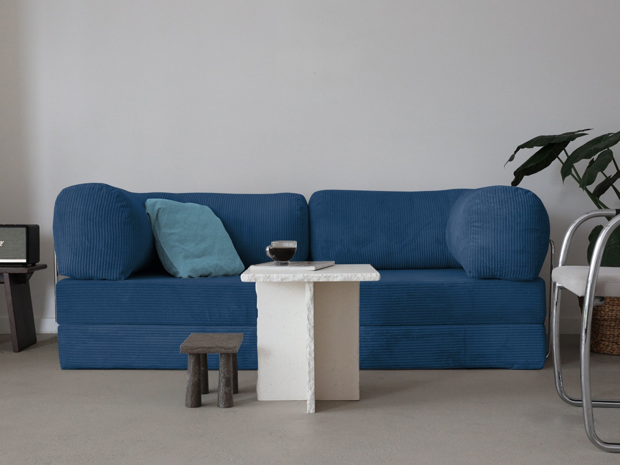 Kanapa piankowa Foamy z funkcją spania niebieski sztruks