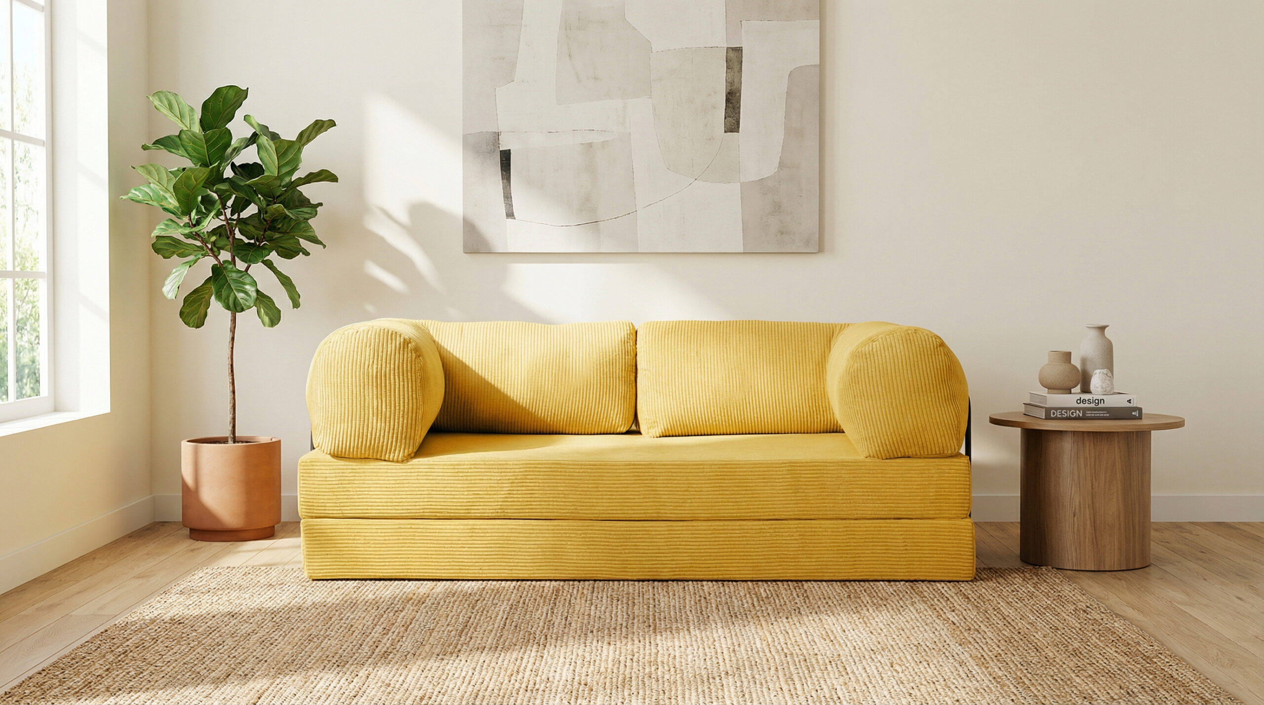 Kanapa piankowa Foamy z funkcją spania żółty sztruks