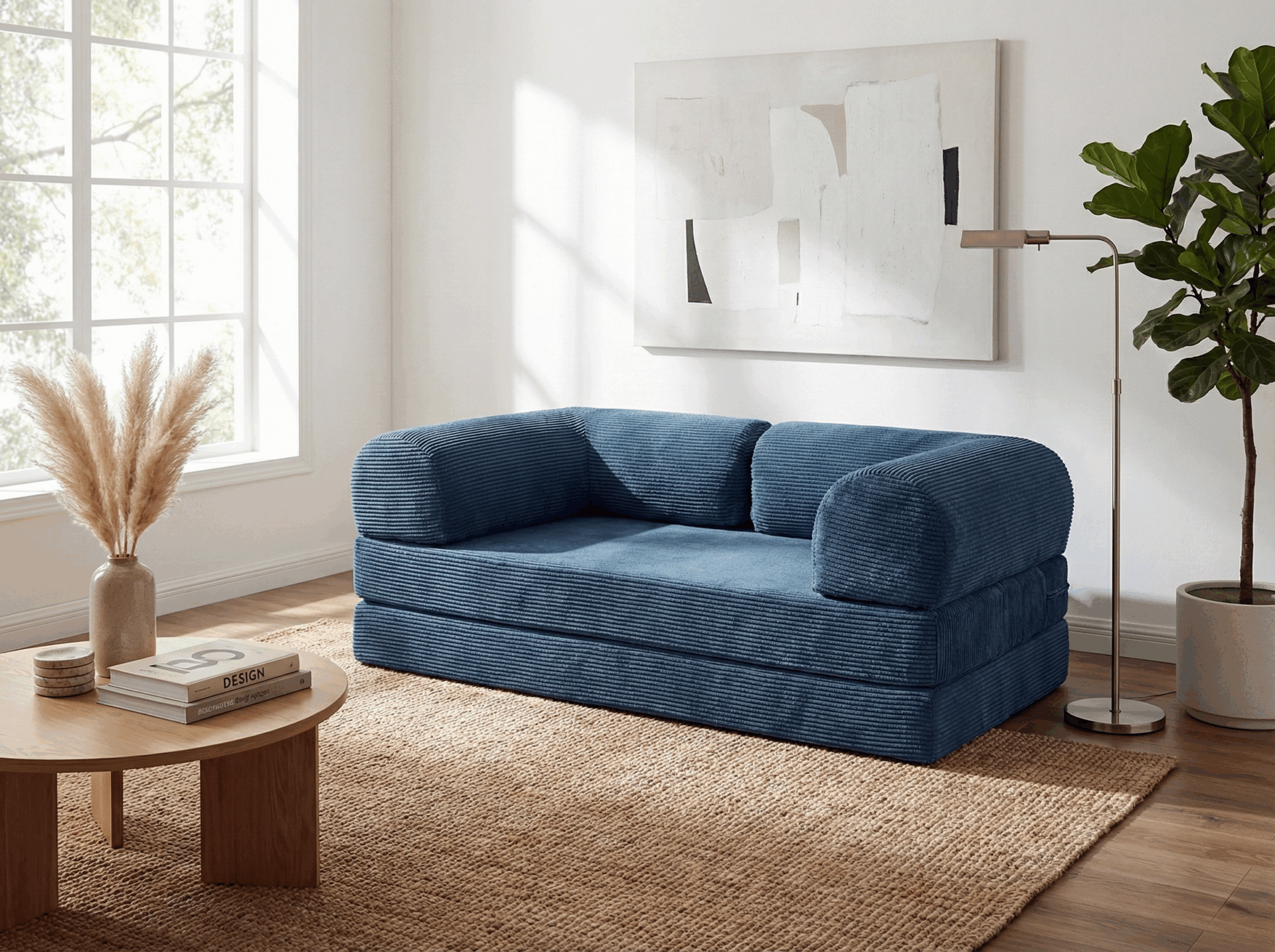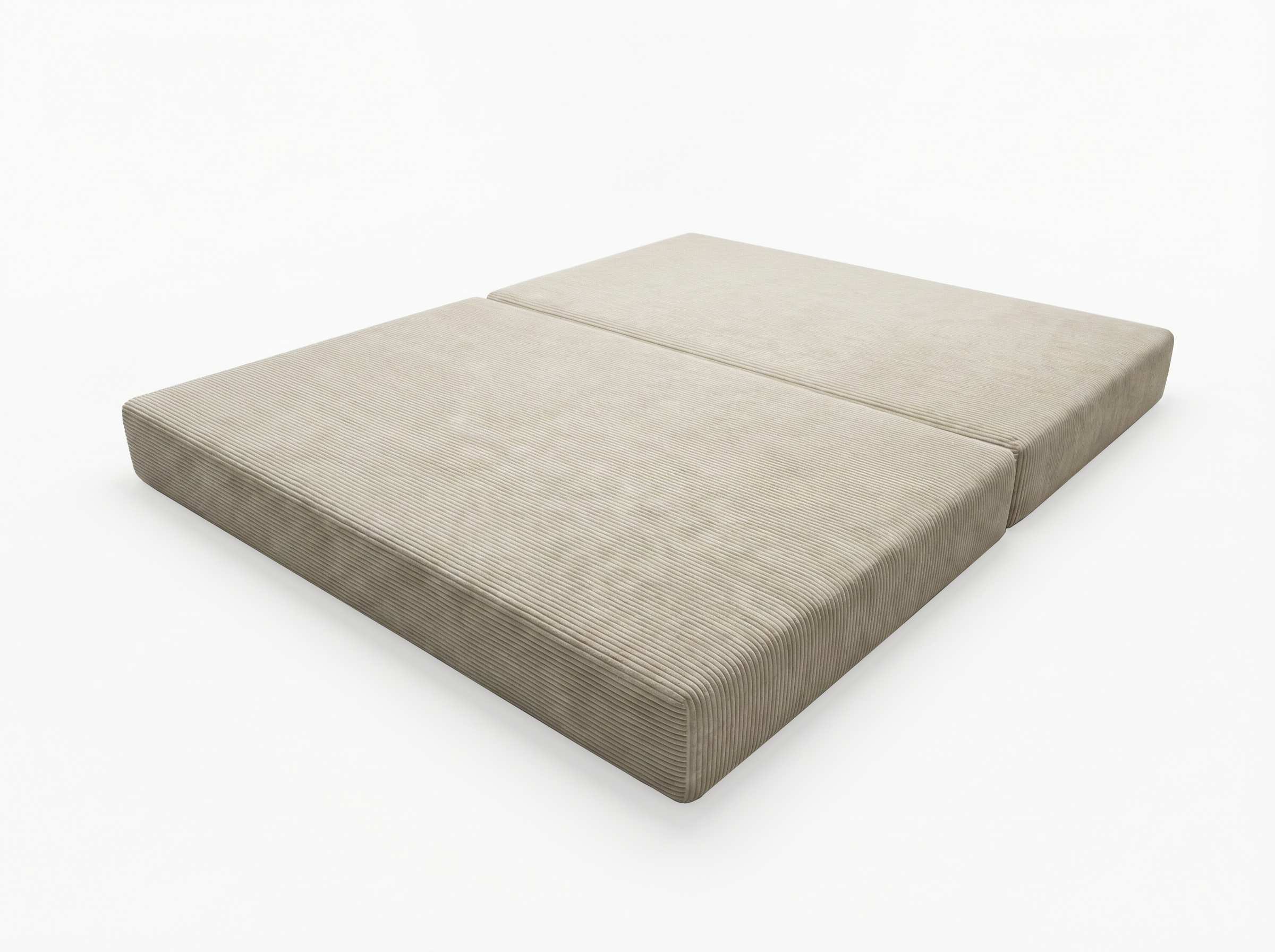 Rozkładana sofa podłogowa Halo łączy wygodę z maksymalną oszczędnością miejsca. To lekka, modułowa forma wypoczynku, która doskonale sprawdzi się w nowoczesnych wnętrzach typu „compact living”. Miękka tapicerka sztruksowa jest przyjemna w dotyku, a jednocześnie odporna na codzienne użytkowanie.