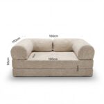 Dwie duże poduchy tworzą komfortowe, narożne oparcie – idealne do czytania, oglądania filmów czy relaksu z laptopem. Po rozłożeniu sofa zamienia się w płaską, równą powierzchnię spania – świetną dla gości lub na popołudniową drzemkę.
