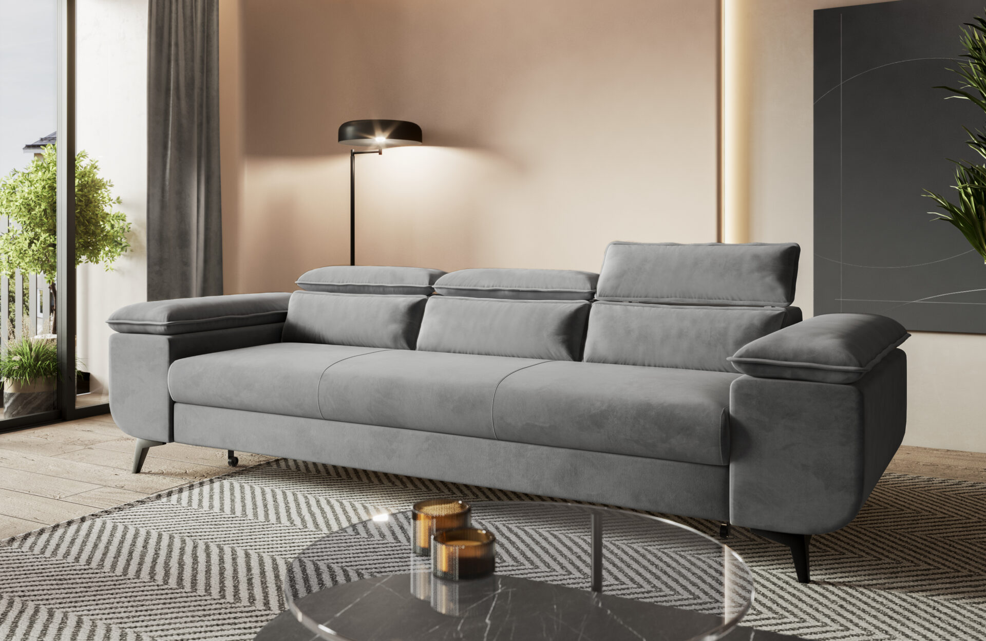 Kanapa Flat została zaprojektowana z myślą o codziennym komforcie. W siedzisku zastosowano sprężyny faliste i elastyczną piankę, które zapewniają wygodę oraz trwałość użytkowania. Regulowane zagłówki pozwalają dopasować podparcie do indywidualnych potrzeb, zwiększając komfort podczas relaksu.