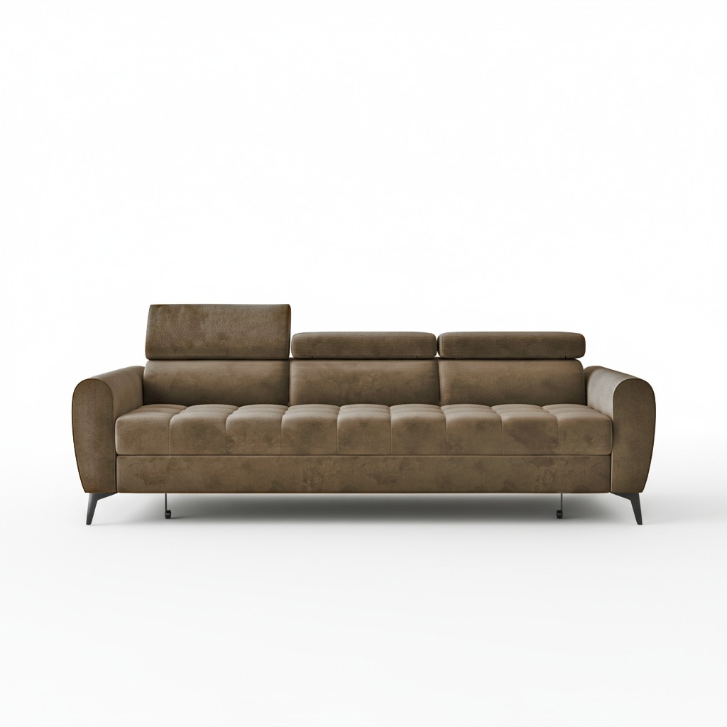 Wygodne siedzisko ze sprężynami falistymi zaprasza do odpoczynku po długim dniu. Zapewnia ono sprężystość i stabilne podparcie dla ciała. Co ważne, kanapa posiada regulowane zagłówki. Pozwalają one dostosować wysokość oparcia do indywidualnych potrzeb. Dzięki temu wieczorny seans filmowy lub czytanie książki stają się jeszcze przyjemniejsze.