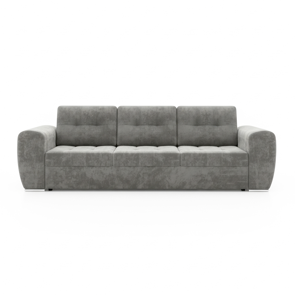 Miękki welur jest nie tylko przyjemny w dotyku, ale także bardzo praktyczny. Tkanina Monolith utrudnia wchłanianie rozlanych płynów, co ułatwia utrzymanie mebla w czystości. Jest również przyjazna zwierzętom, ponieważ łatwo usunąć z niej sierść i jest odporna na zadrapania. Szara kanapa Bari zachowuje swój piękny wygląd na lata, pozwalając cieszyć się beztroskim czasem z rodziną i czworonogami.