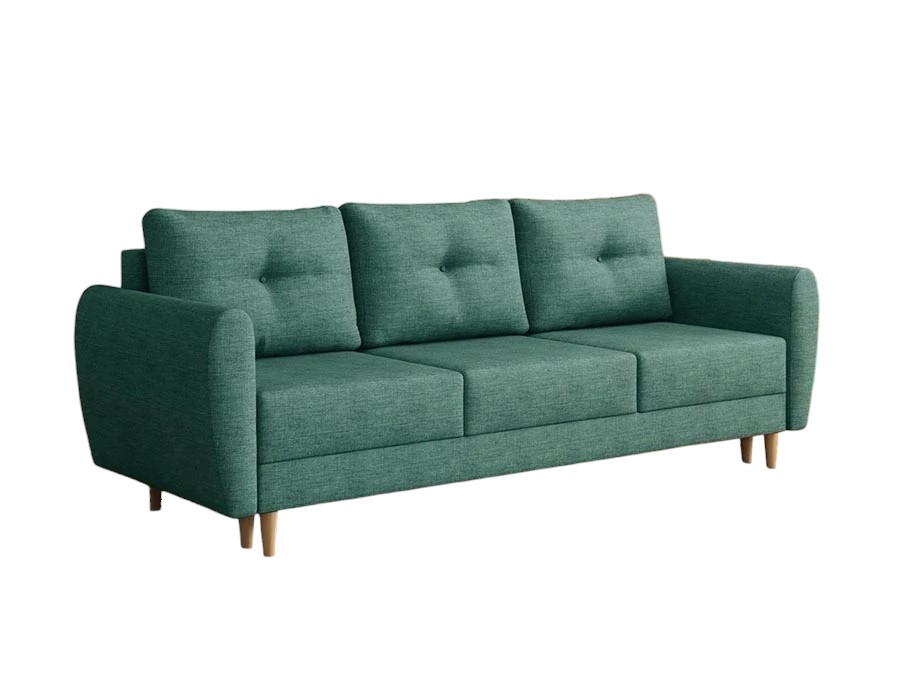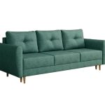 Jej lekka forma opiera się na wysokich nóżkach z naturalnego drewna bukowego. Smukła linia mebla doskonale wpisuje się w klasyczne i nowoczesne aranżacje. Głęboki turkusowy odcień tapicerki staje się wyrazistym akcentem we wnętrzu. Ożywia przestrzeń, dodając jej charakteru oraz energii. Kolor ten pięknie współgra z bielą, szarościami i ciepłymi odcieniami drewna, tworząc przytulną atmosferę.