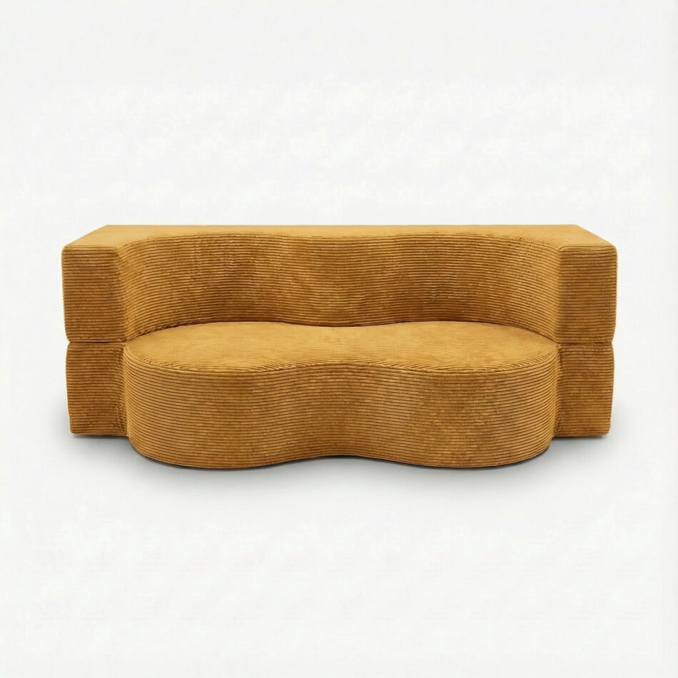 Sofa piankowa Arc z funkcją spania musztardowy sztruks