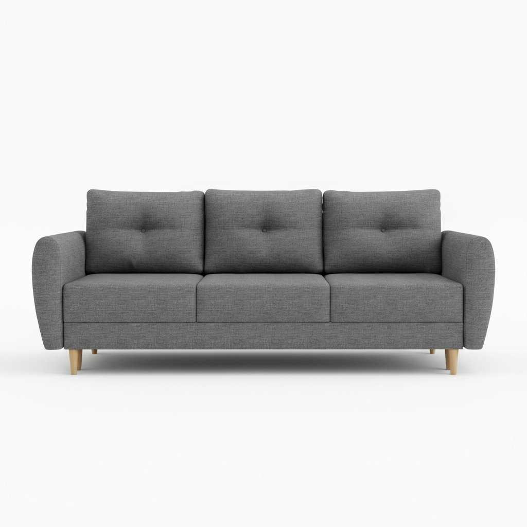 Co ważne, mebel jest doskonale przygotowany na codzienne wyzwania. Posiada prostą w obsłudze funkcję spania typu DL, która w kilka chwil zmienia go w wygodne łóżko dla gości. Pod siedziskiem znajduje się duży pojemnik na pościel. Pozwala on przechować dodatkowe koce i poduszki, pomagając utrzymać porządek w salonie.