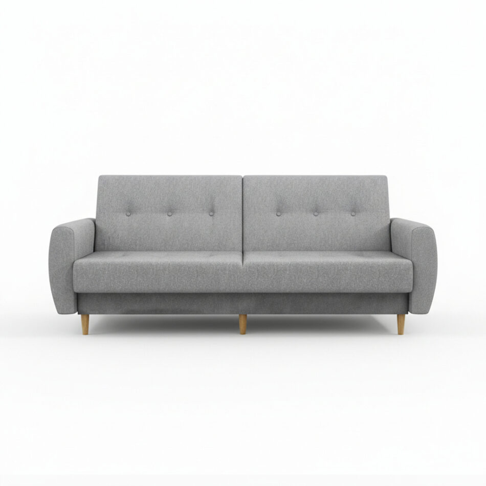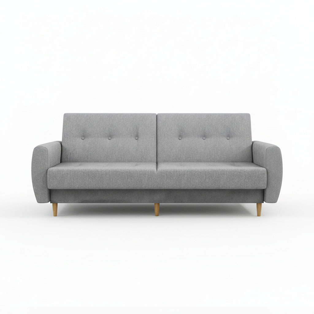 Model PRL jest niezwykle praktyczny na co dzień. Posiada funkcję spania, którą aktywuje prosty w obsłudze mechanizm klik-klak. Dzięki temu w kilka chwil można przygotować wygodne miejsce do spania dla gości. Kanapa wyposażona jest także w pojemny schowek na pościel. To świetne rozwiązanie do przechowywania dodatkowej kołdry, poduszek czy koców, pomagając utrzymać porządek w salonie.