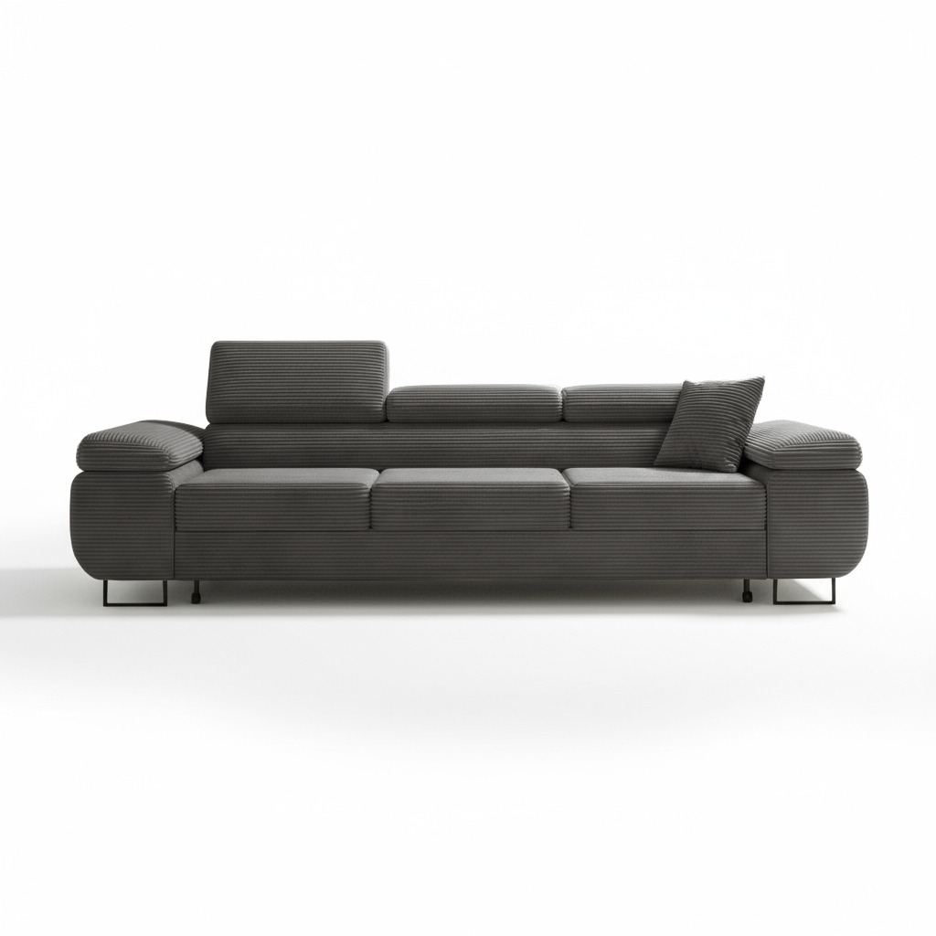 Grafitowy odcień tapicerki wprowadza do wnętrza spokój oraz ponadczasową elegancję. Stanowi on doskonałą bazę dla aranżacji w stylu nowoczesnym lub loftowym. Można go łatwo ożywić kolorowymi dodatkami. Co ważne, tapicerowany tył pozwala ustawić kanapę w dowolnym miejscu salonu, także na środku pomieszczenia. W ten sposób zyskuje się pełną swobodę w projektowaniu strefy wypoczynku.