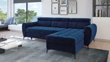Granatowa kanapa Bjorn staje się sercem salonu, w którym domownicy chętnie spędzają czas. Wprowadza do aranżacji atmosferę przytulnej elegancji. To idealne miejsce na popołudniowy relaks i spotkania z bliskimi w komfortowym otoczeniu.