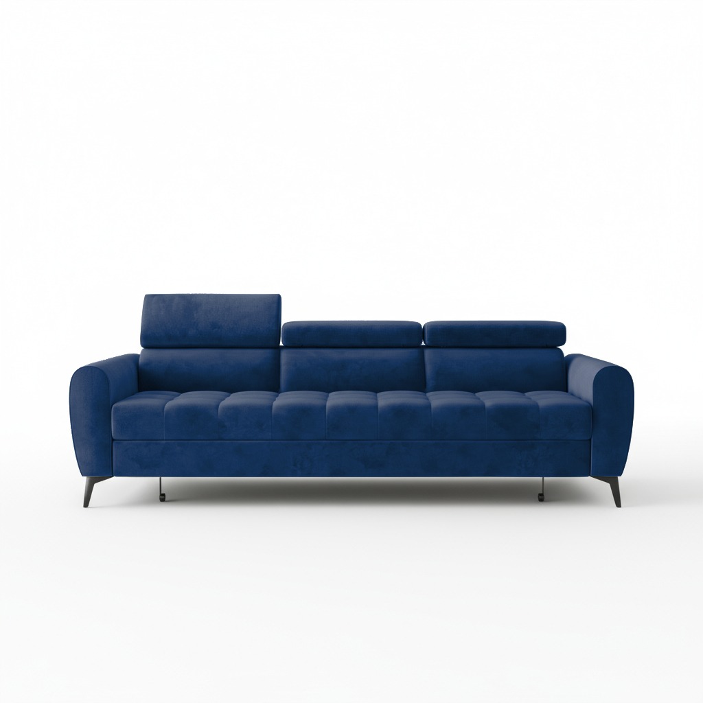 Kanapa Bjorn została zaprojektowana z myślą o codziennym wypoczynku. Regulowane zagłówki pozwalają idealnie dopasować wysokość oparcia do indywidualnych potrzeb. Dzięki temu wieczorny seans filmowy lub chwila z książką stają się jeszcze przyjemniejsze. O komfort siedzenia dbają sprężyny faliste oraz elastyczna pianka poliuretanowa. Zapewniają one optymalne podparcie i zapobiegają odkształceniom siedziska.