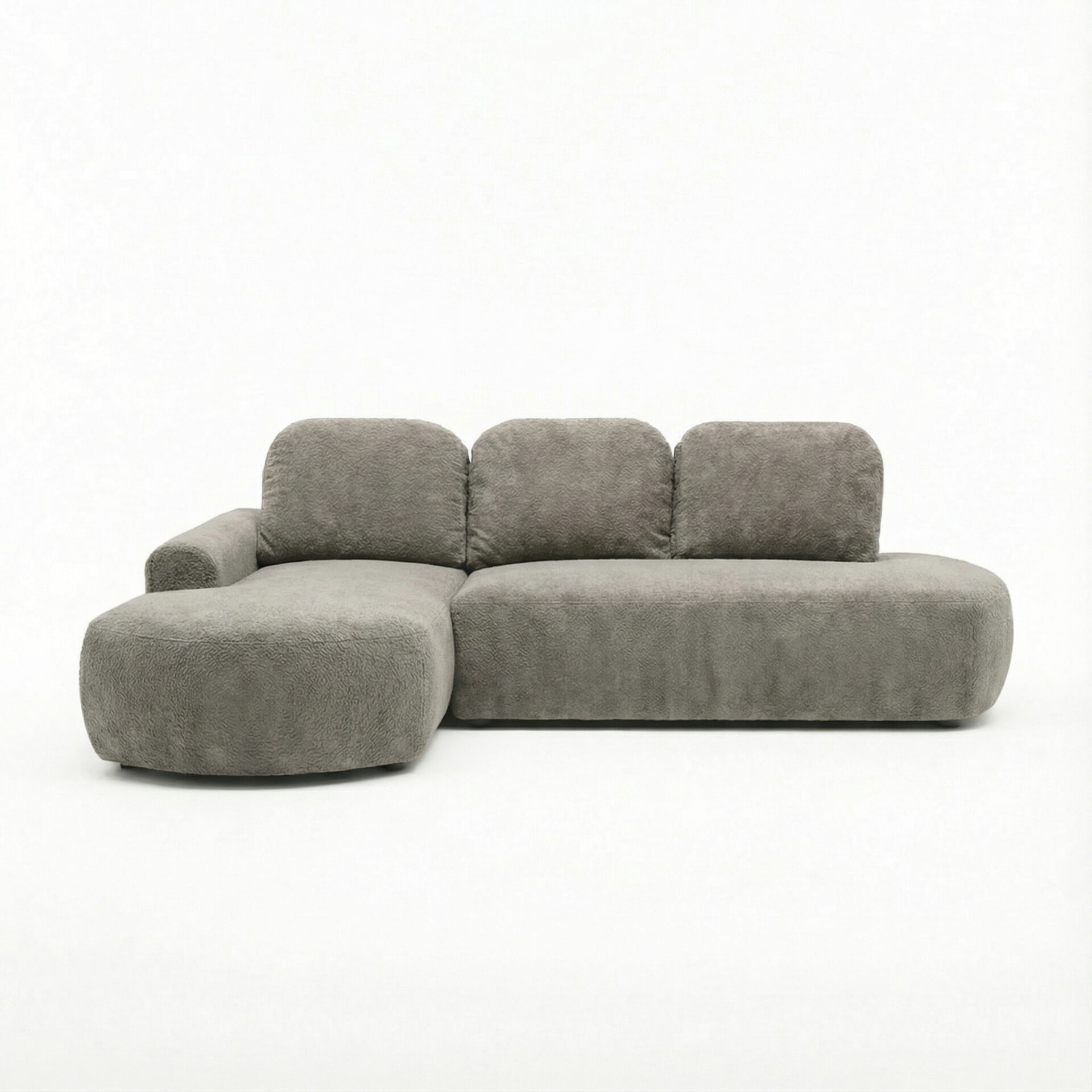 Harmonijna forma narożnika w kształcie litery L zapewnia wygodną przestrzeń do wypoczynku i sprzyja relaksowi po długim dniu. Tapicerowany tył umożliwia swobodne ustawienie mebla w dowolnym miejscu pomieszczenia, również na jego środku, tworząc spójną i estetyczną strefę wypoczynkową. Jego bryła sprawia, że narożnik Cloud z łatwością dopasuje się do różnych stylów wnętrzarskich.