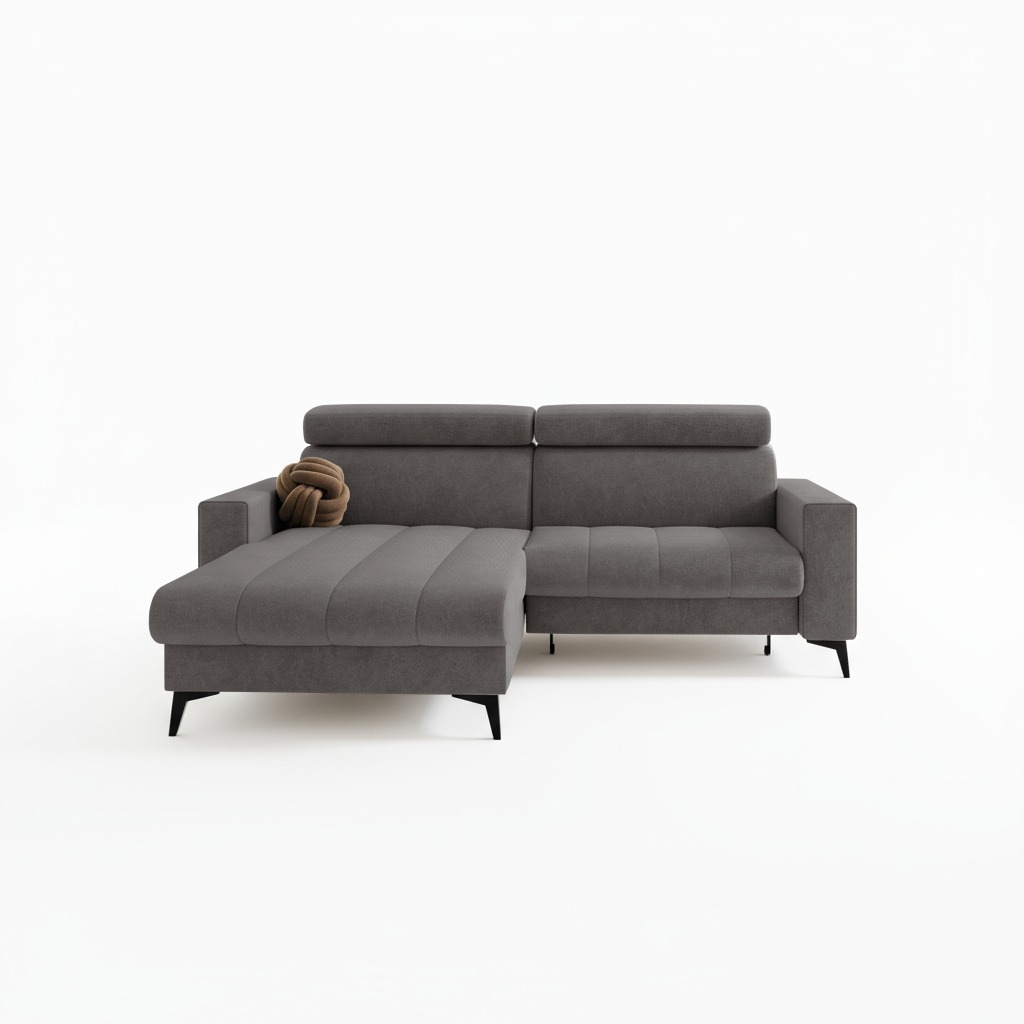 Codzienne użytkowanie ułatwia welurowa tkanina Cloud o specjalnych właściwościach. Utrudnia ona wchłanianie rozlanych płynów, dając czas na ich usunięcie. Co więcej, jest przyjazna zwierzętom, a jej powierzchnię można łatwo oczyścić z sierści. Dlatego ciemnoszary narożnik Bonito to doskonały wybór dla rodzin z dziećmi i właścicieli czworonogów, którzy cenią sobie komfort bez kompromisów.