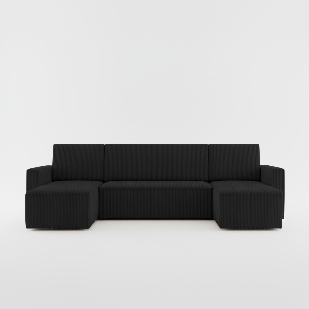 Jego obszerny kształt w formie litery U tworzy idealną przestrzeń do wspólnego wypoczynku. Staje się naturalnym centrum salonu, zapraszając domowników do spędzania czasu razem. Wyrazista, czarna barwa nadaje mu ponadczasowej elegancji. Dlatego mebel świetnie odnajduje się zarówno w aranżacjach nowoczesnych, jak i klasycznych. Stanowi mocny akcent dekoracyjny lub stonowane tło dla innych dodatków.
