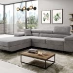 Jego minimalistyczna bryła w kształcie litery L została osadzona na wysokich, czarnych nóżkach. Nadaje to całej konstrukcji wizualnej lekkości. Subtelna szarość obicia wprowadza do wnętrza spokój i elegancję. Dlatego narożnik doskonale odnajdzie się w aranżacjach w stylu loftowym lub skandynawskim. Tapicerowany tył pozwala swobodnie ustawić mebel w dowolnym miejscu salonu. W ten sposób staje się on centralnym punktem domowego życia.