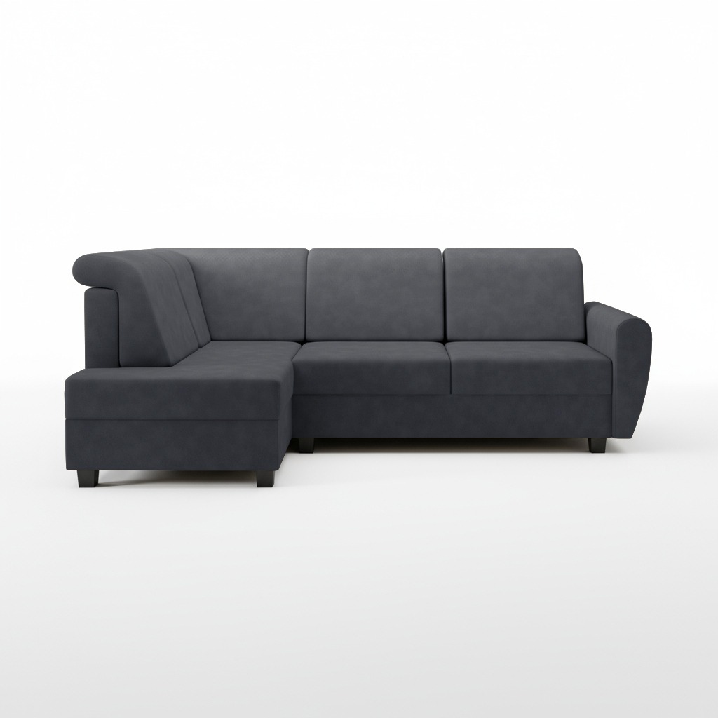 Siedzisko wypełnione sprężynami falistymi oraz pianką zapewnia komfort na co dzień. Dlatego narożnik jest idealnym miejscem na popołudniową drzemkę lub wieczorny seans filmowy. Pięć luźnych poduszek oparciowych pozwala na znalezienie najwygodniejszej pozycji. W razie potrzeby mebel można łatwo zmienić w wygodne łóżko. Rozkładanie za pomocą automatu DL jest proste i intuicyjne. Dzięki temu przenocowanie gości staje się bezproblemowe. Pojemnik pod siedziskiem pomieści pościel lub dodatkowe koce.