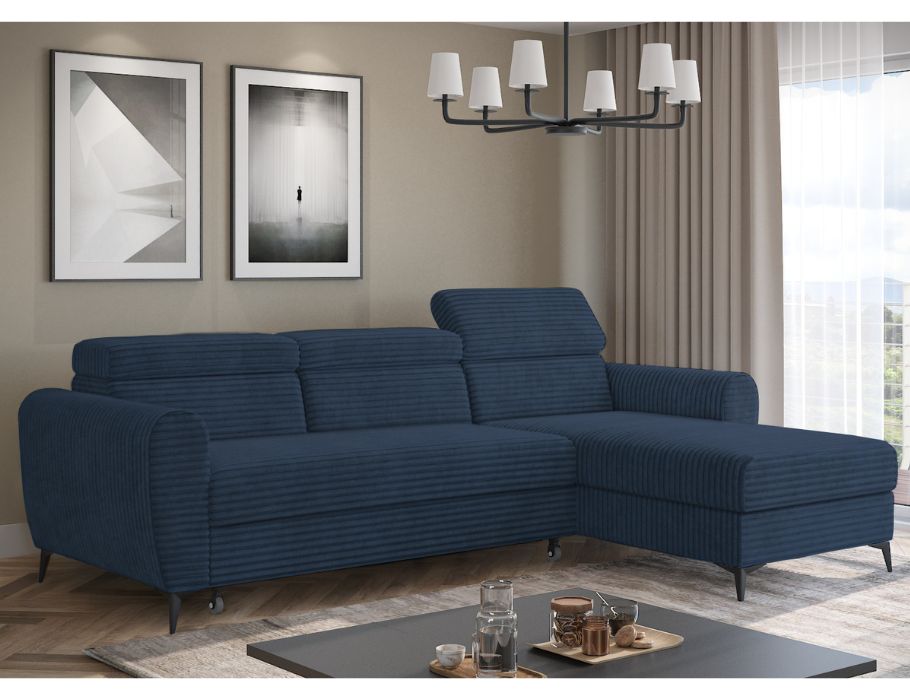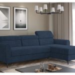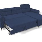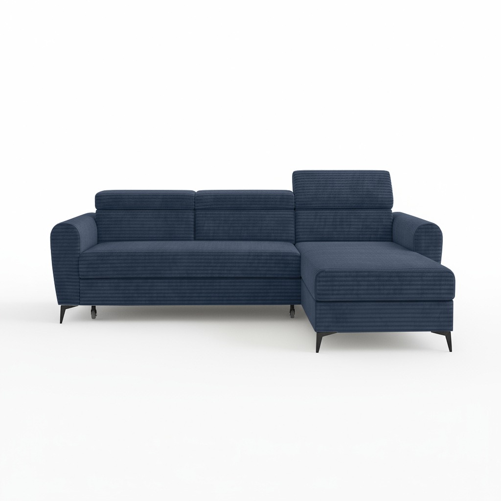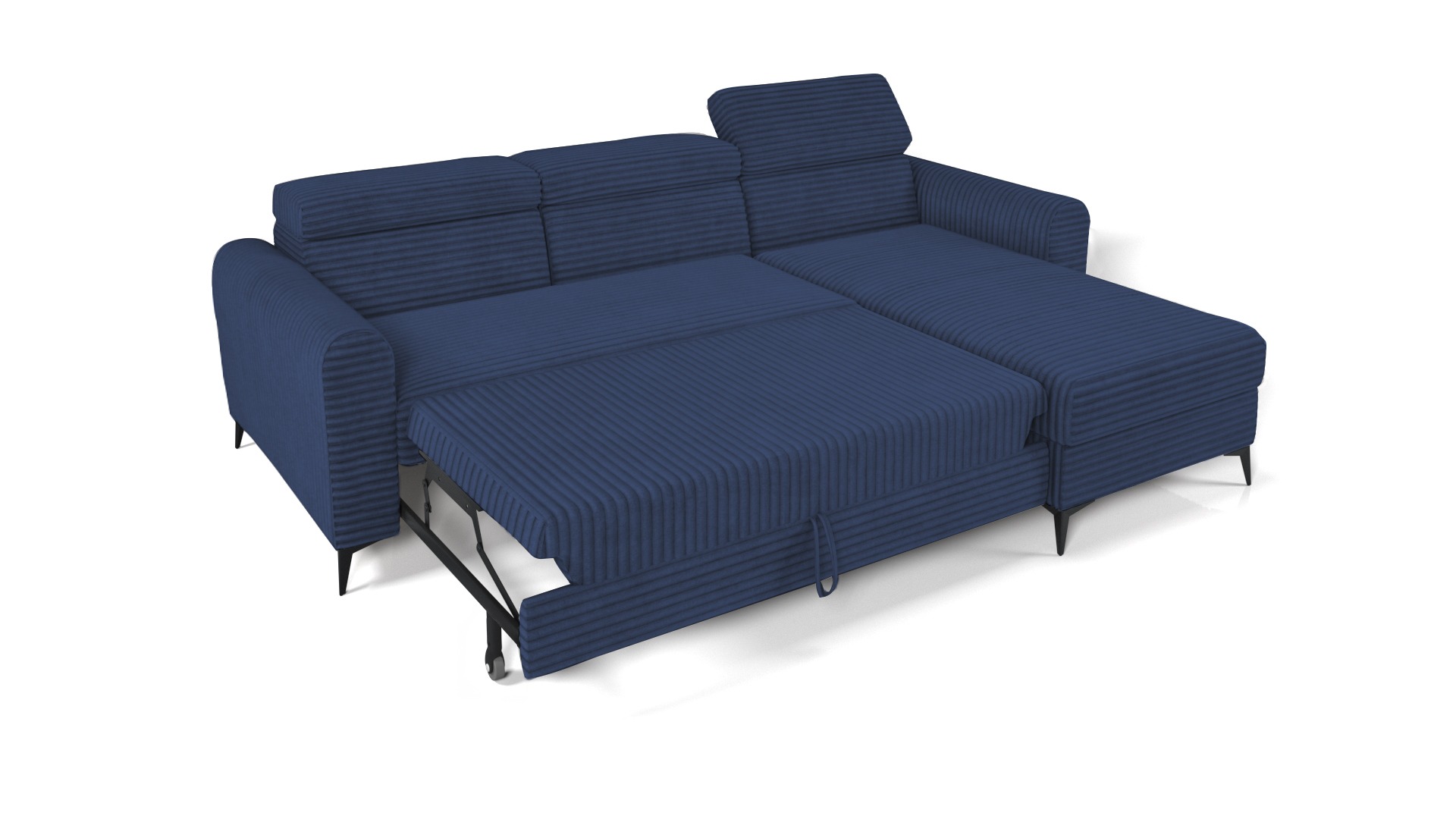 Narożnik z funkcją spania Bjorn uniwersalny L-kształtny z pojemnikiem na pościel granatowy sztruks