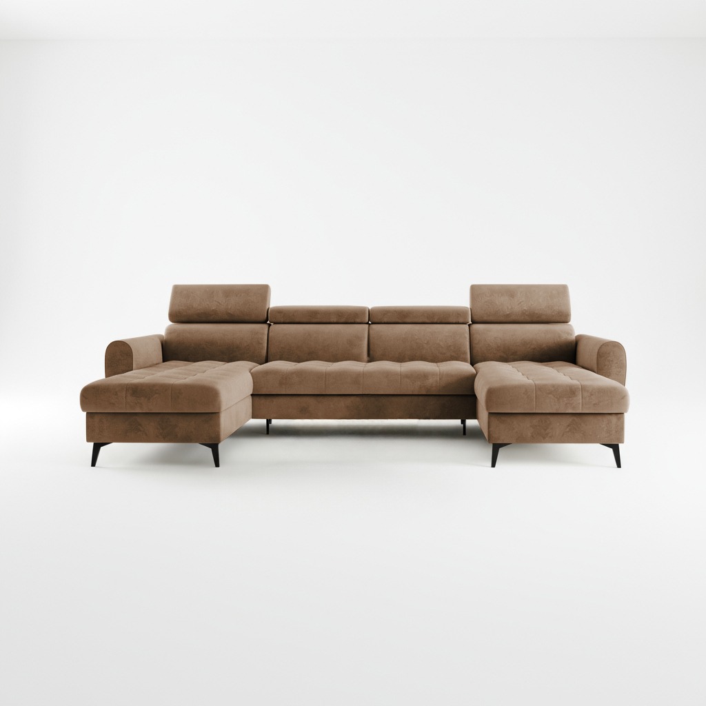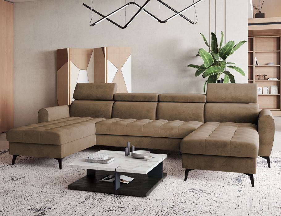 Narożnik Bjorn U wyróżnia się regulowanymi zagłówkami, które umożliwiają dostosowanie kąta oparcia do indywidualnych preferencji. To idealne rozwiązanie dla osób, które cenią sobie wysoki komfort wypoczynku. Pikowane siedziska nadają meblowi elegancji i podkreślają jego nowoczesny charakter.