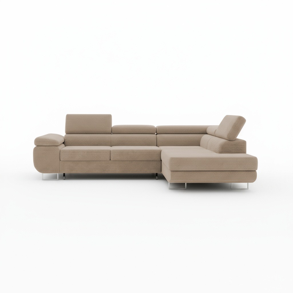 Narożnik Astorp jest przygotowany także na wizytę gości. Szybkie rozkładanie za pomocą automatu Delfin zmienia go w wygodne miejsce do spania dla dwóch osób. Pojemny schowek na pościel pomaga utrzymać idealny porządek w salonie. Co ważne, beżowy sztruks jest nie tylko przyjemny w dotyku. Jego specjalne właściwości ograniczają wchłanianie płynów i ułatwiają czyszczenie, a przy tym materiał jest przyjazny zwierzętom.