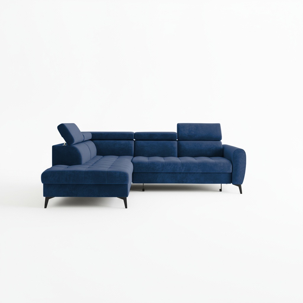 Narożnik Bjorn L jest stworzony do codziennego odpoczynku. W siedzisku zastosowano sprężyny faliste. Zapewniają one optymalną sprężystość i wygodę podczas siedzenia. Regulowane zagłówki pozwalają dopasować wysokość oparcia do indywidualnych potrzeb. Dlatego wieczorny seans filmowy staje się jeszcze przyjemniejszy. W razie potrzeby mebel można łatwo zmienić w wygodne łóżko. Rozkładanie za pomocą automatu Delfin jest szybkie i nie wymaga siły. Duży pojemnik na pościel pomaga utrzymać porządek w salonie.