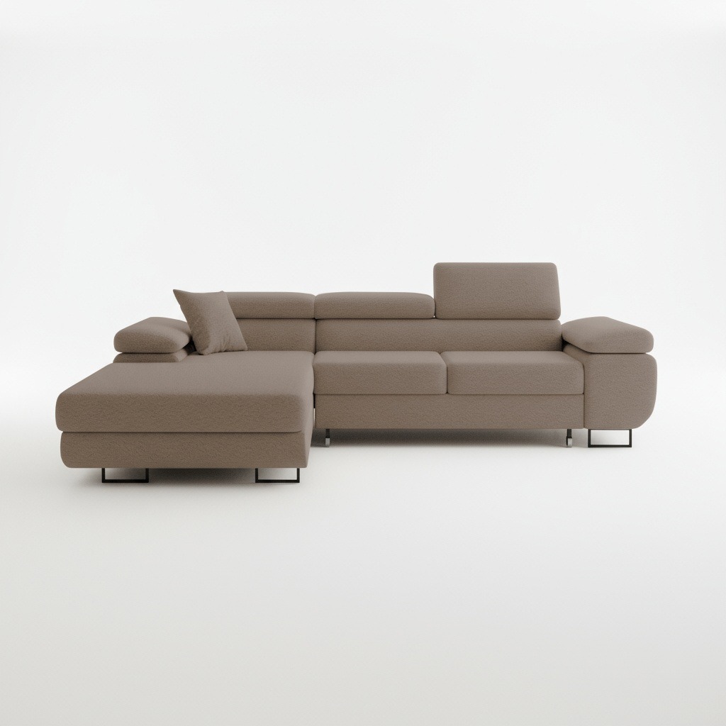 Wyjątkowa tkanina boucle jest nie tylko piękna, ale także niezwykle funkcjonalna. Jej struktura utrudnia wchłanianie rozlanych płynów, co daje czas na ich szybkie usunięcie. Materiał jest również przyjazny zwierzętom, ponieważ cechuje go zwiększona odporność na zaciągnięcia i łatwość czyszczenia z sierści. Jasnobrązowy narożnik Astorp L pozwala cieszyć się wspólnym czasem bez obaw o codzienne zabrudzenia, stając się sercem przytulnego i pełnego życia domu.