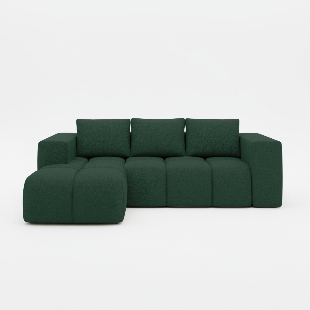 Ciemnozielony narożnik Flavio staje się sercem domu, wnosząc do niego piękny wygląd oraz codzienną funkcjonalność.