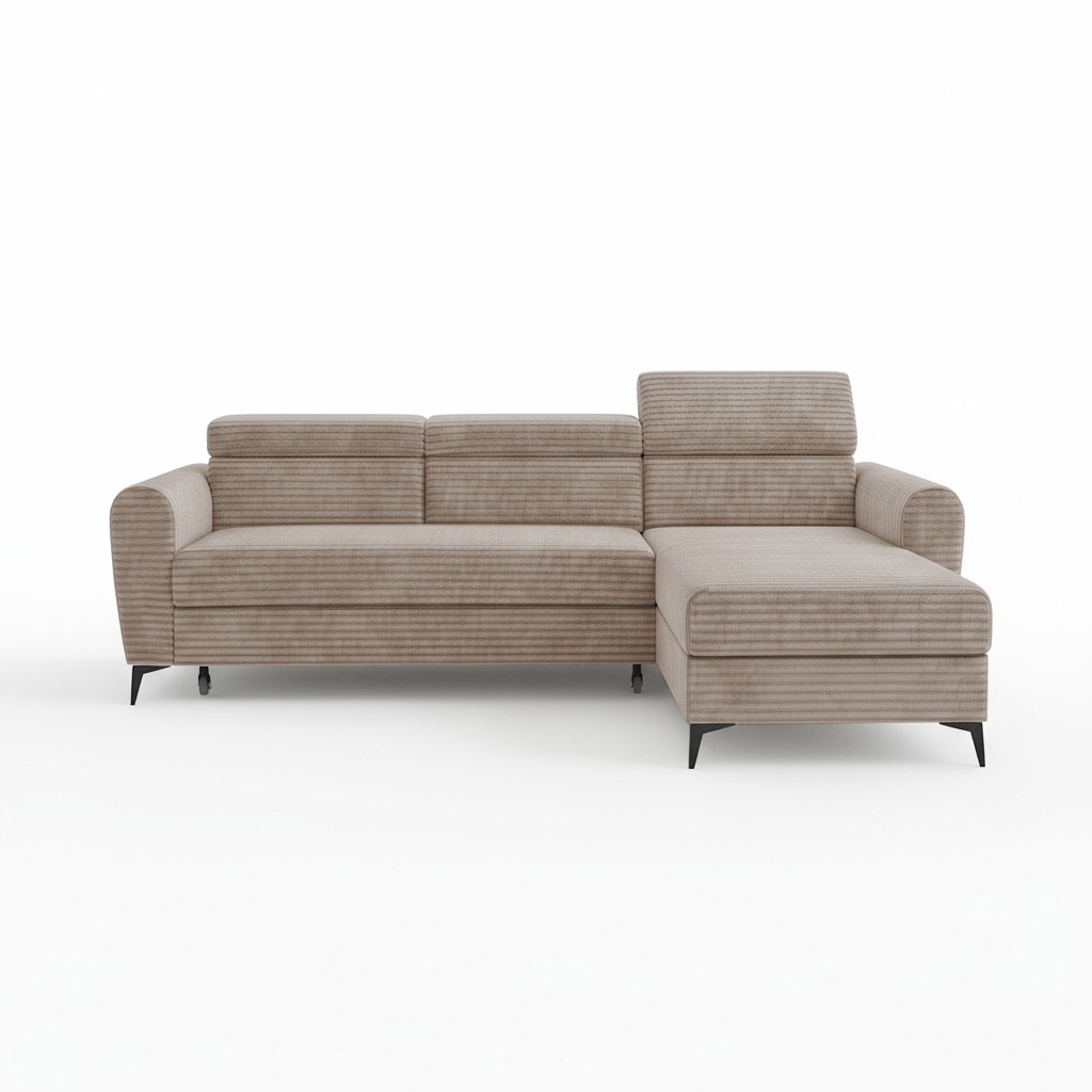 Narożnik z funkcją spania Bjorn uniwersalny L-kształtny z pojemnikiem na pościel beżowy sztruks