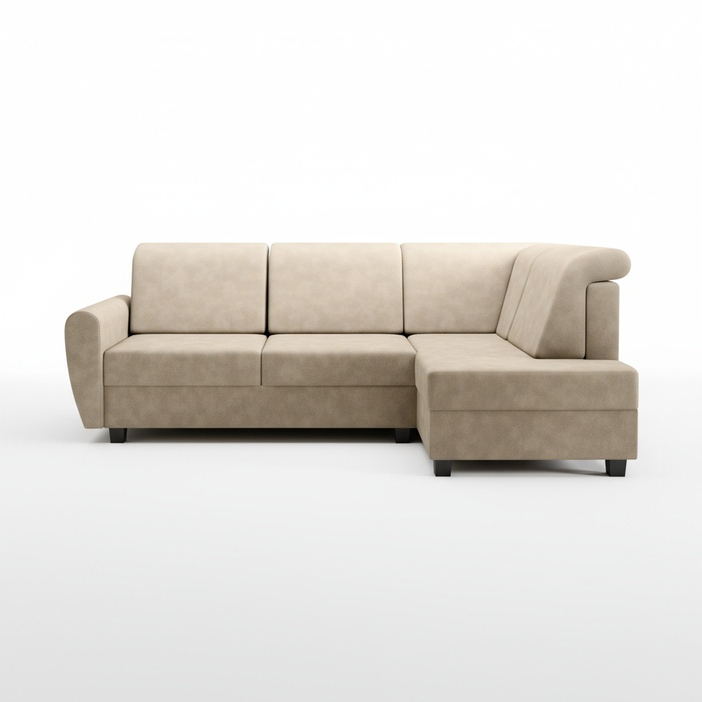Narożnik wyposażono w intuicyjną funkcję spania. Rozkładanie za pomocą automatu DL jest szybkie i nie wymaga wysiłku. W ten sposób można w kilka chwil przygotować wygodne miejsce do spania dla gości. Mebel posiada również praktyczny pojemnik na pościel. Ułatwia on utrzymanie porządku w salonie i przechowywanie dodatkowych tekstyliów.