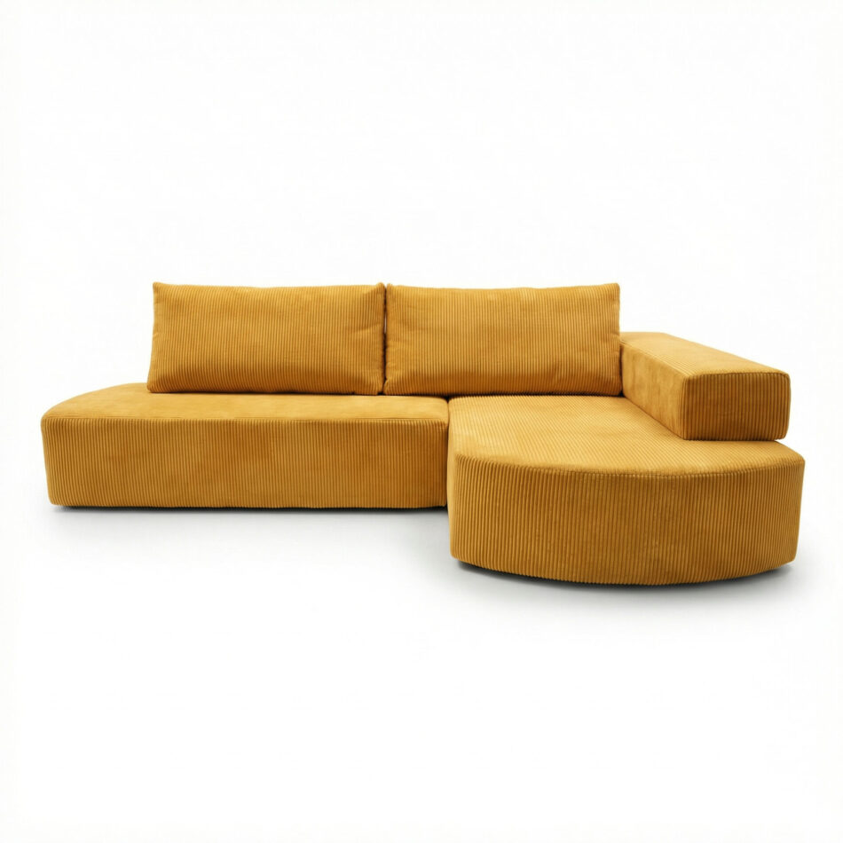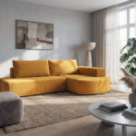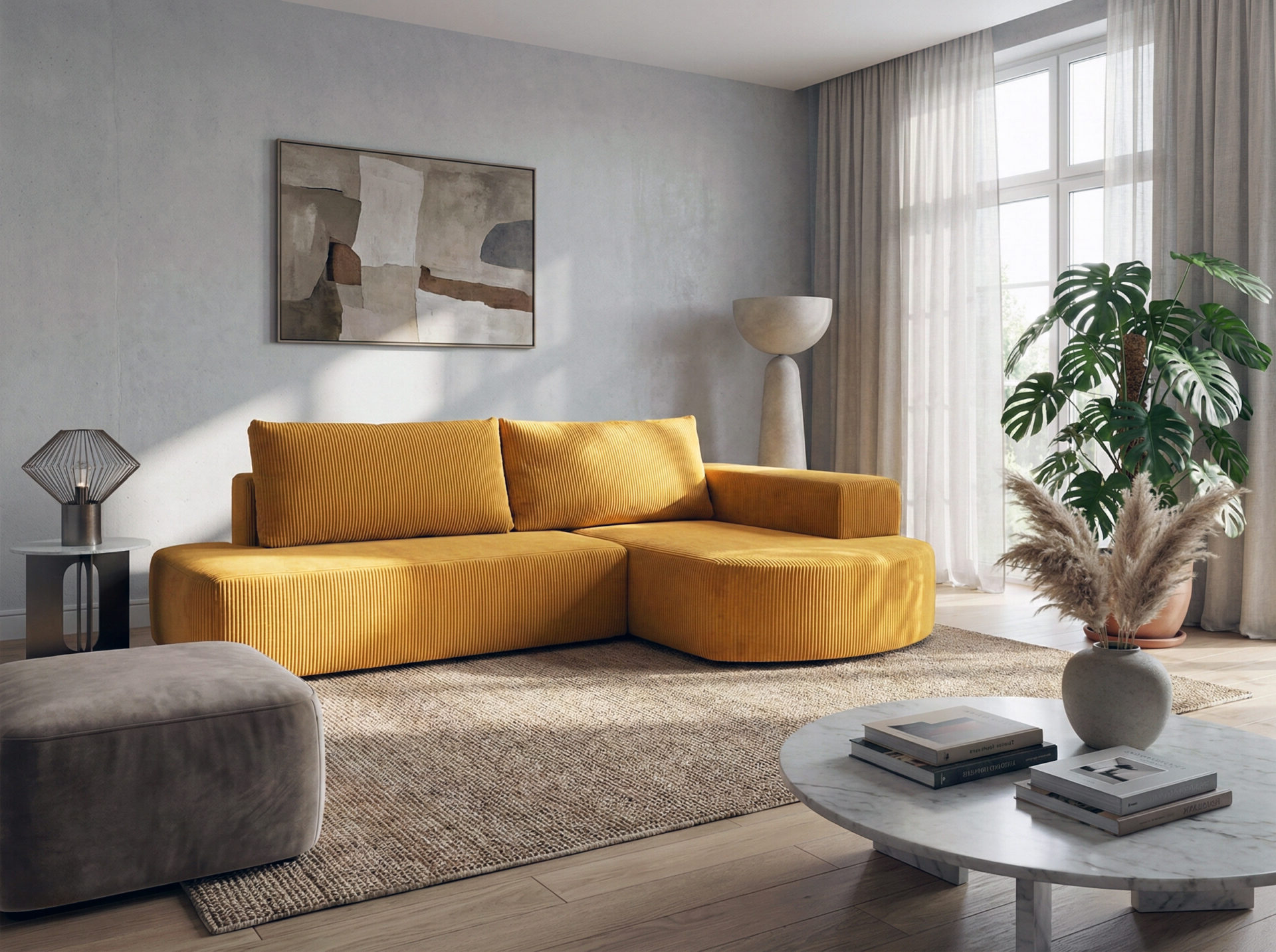 Narożnik piankowy Linea prawostronny z funkcją spania musztardowy sztruks