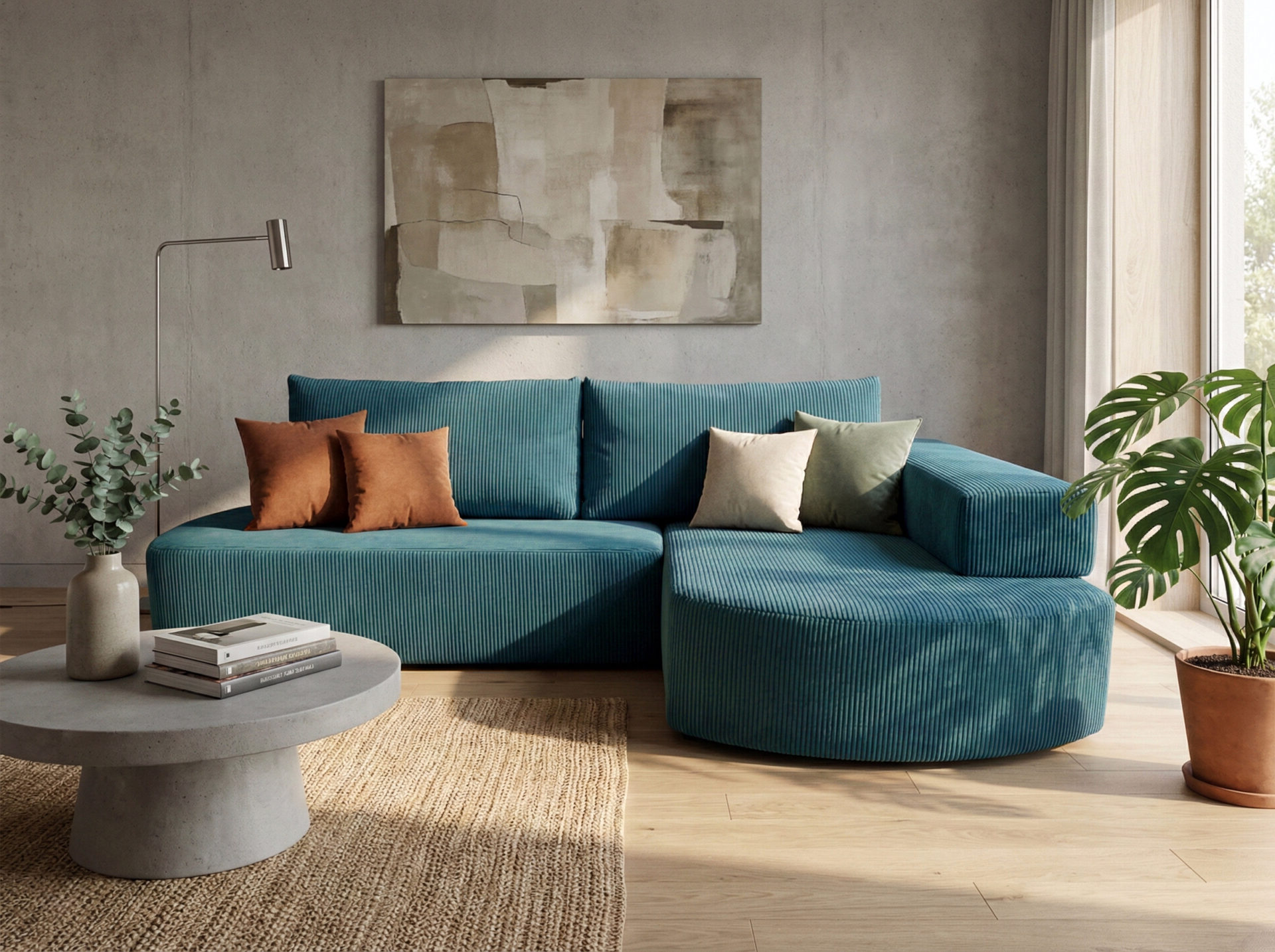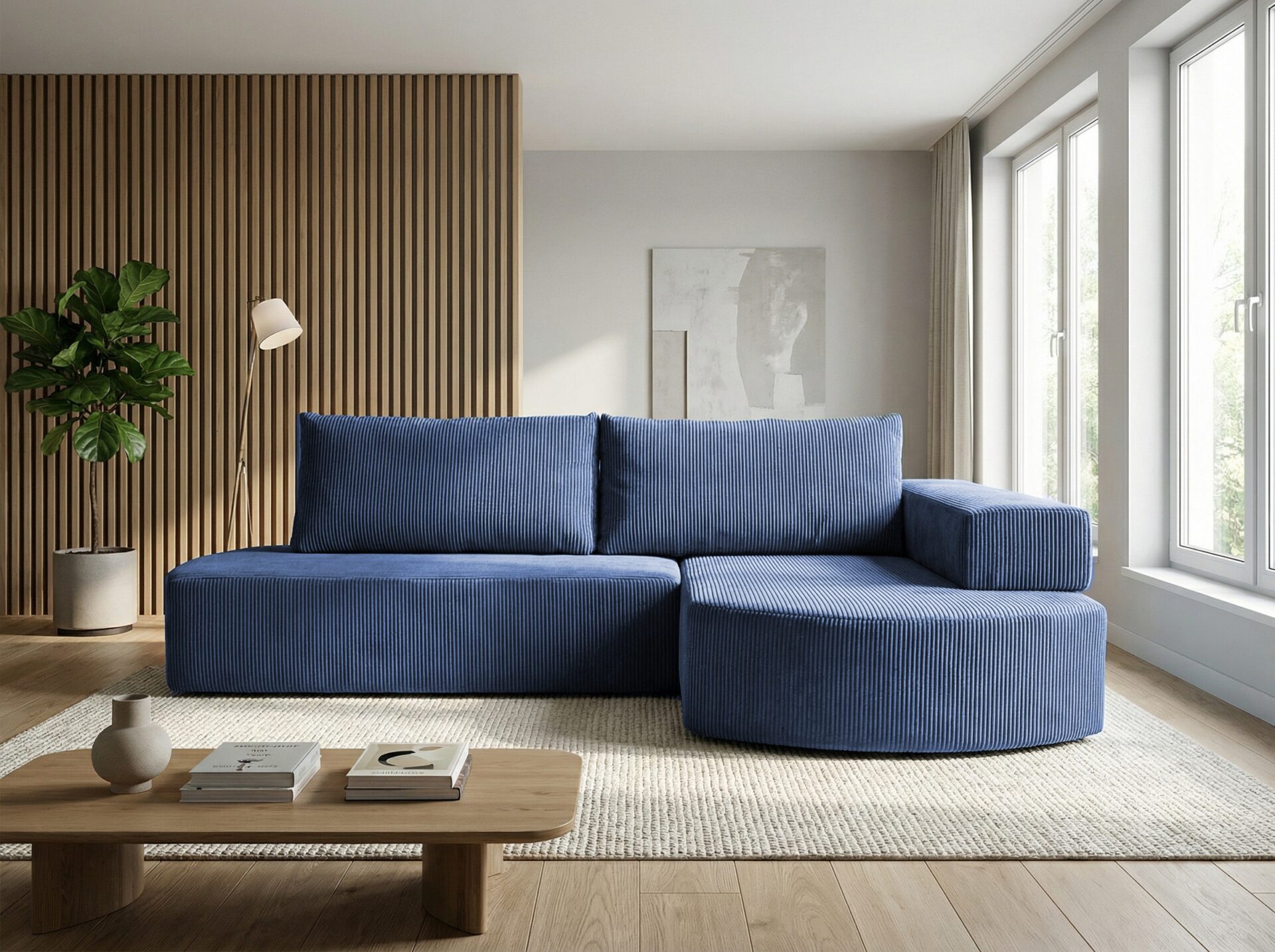 Prawostronny narożnik Linea to mebel łączący nowoczesny design, wygodę i funkcjonalność, idealny do małych i średnich salonów, pokojów młodzieżowych oraz wnętrz wielofunkcyjnych. Jego prosta, miękka forma w połączeniu z delikatnie zaokrąglonymi kształtami nadaje lekki, współczesny charakter, który łatwo dopasować do różnych aranżacji wnętrz.