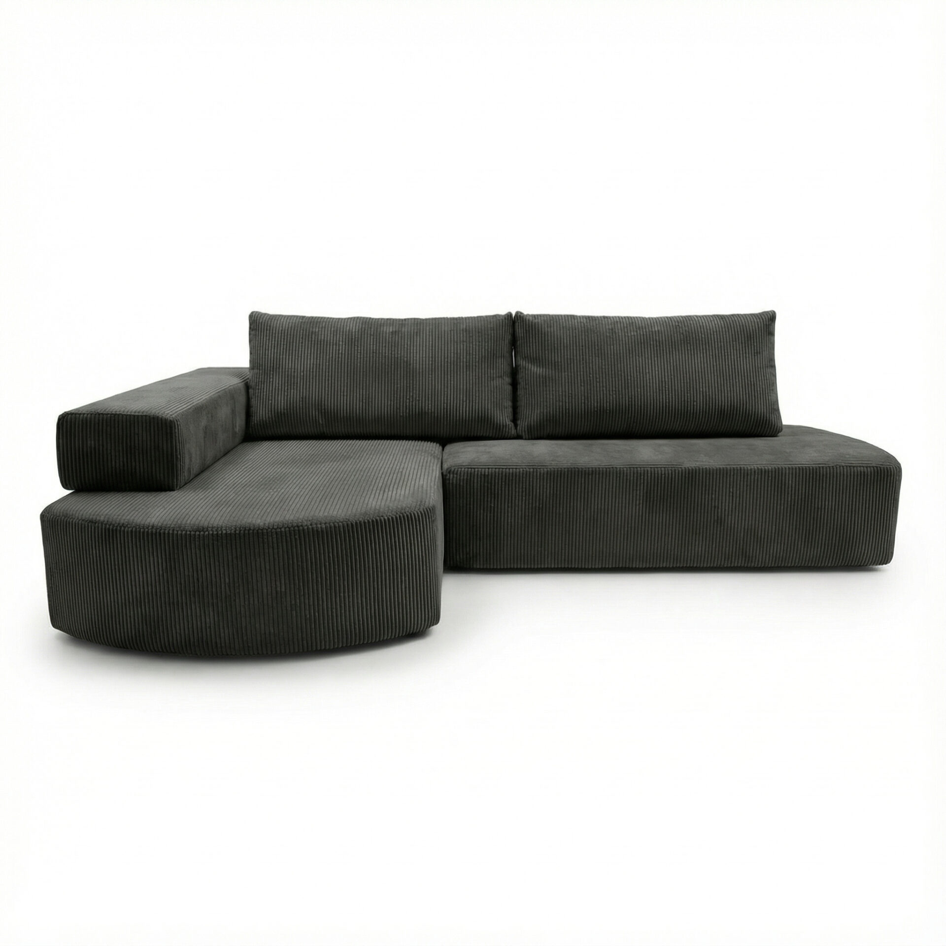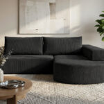 Tapicerka z miękkiej tkaniny sztruksowej o wyraźnej strukturze nadaje narożnikowi przytulny wygląd i podkreśla jego nowoczesny styl. Materiał jest przyjemny w dotyku i dobrze sprawdza się w codziennym użytkowaniu.