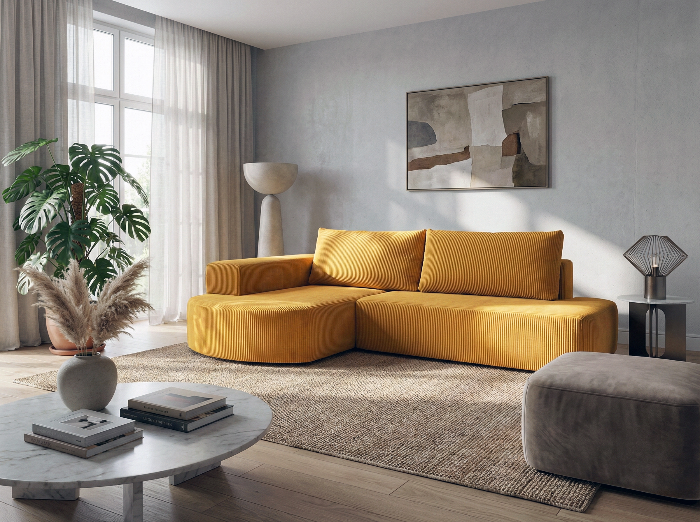 Narożnik piankowy Linea uniwersalny z funkcją spania musztardowy sztruks