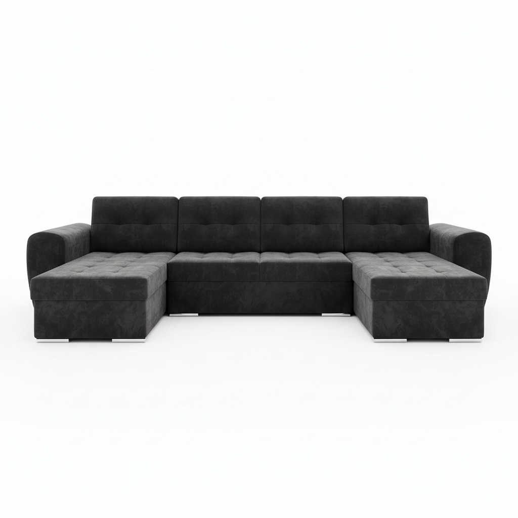 Całość pokrywa miękki i przyjemny w dotyku welur Monolith. Jego hydrofobowe właściwości utrudniają wchłanianie rozlanych płynów. Dzięki temu codzienne użytkowanie staje się beztroskie, nawet w domu pełnym dzieci. Tkanina jest również przyjazna zwierzętom, co ułatwia usuwanie sierści i utrzymanie mebla w czystości. Elegancki grafitowy welur sprawia, że narożnik Bari U jest nie tylko funkcjonalny, ale również niezwykle stylowy.