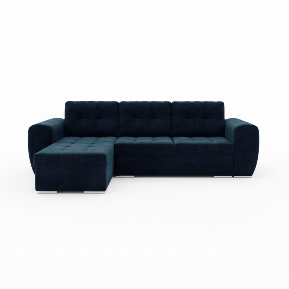 Granatowy narożnik Bari wnosi do wnętrza spokój i poczucie luksusu. Staje się sercem domu, które zaprasza do wspólnego odpoczynku każdego dnia.