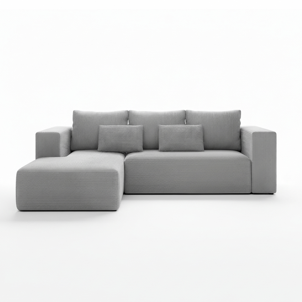 Szary narożnik Stripes jest przygotowany na wszystkie scenariusze domowego życia. Rozkładanie za pomocą automatu DL pozwala w kilka chwil przekształcić go w wygodne łóżko dla gości. Pojemny schowek na pościel pomaga z kolei utrzymać porządek, mieszcząc zapasowe kołdry i poduszki. Sztruksowa tkanina Poso jest wyjątkowo praktyczna. Technologia utrudnionego wchłaniania cieczy sprawia, że rozlane napoje nie wsiąkają od razu w materiał. W ten sposób drobne zabrudzenia można łatwo usunąć wodą.
