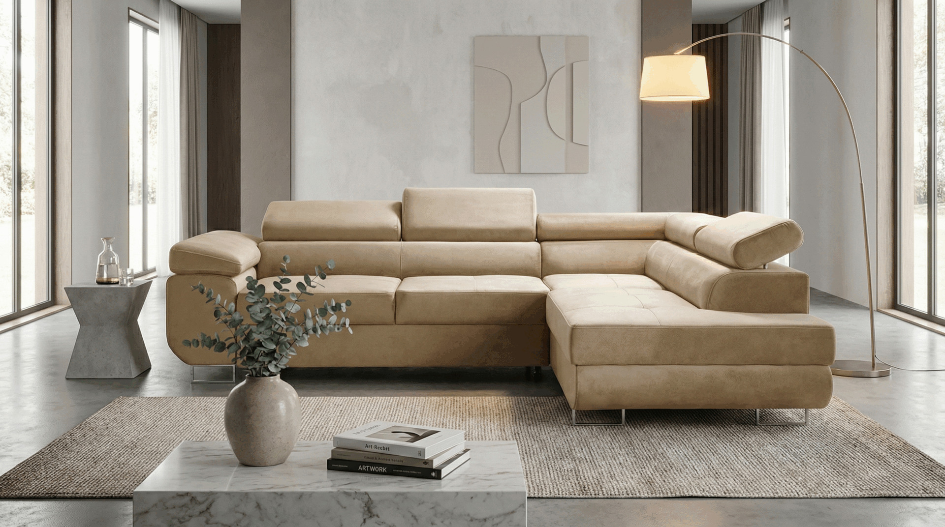 Beżowy narożnik Avesta stanie się sercem domowego życia. To mebel stworzony do wspólnego spędzania czasu z rodziną, przyjmowania gości i cieszenia się komfortem każdego dnia.