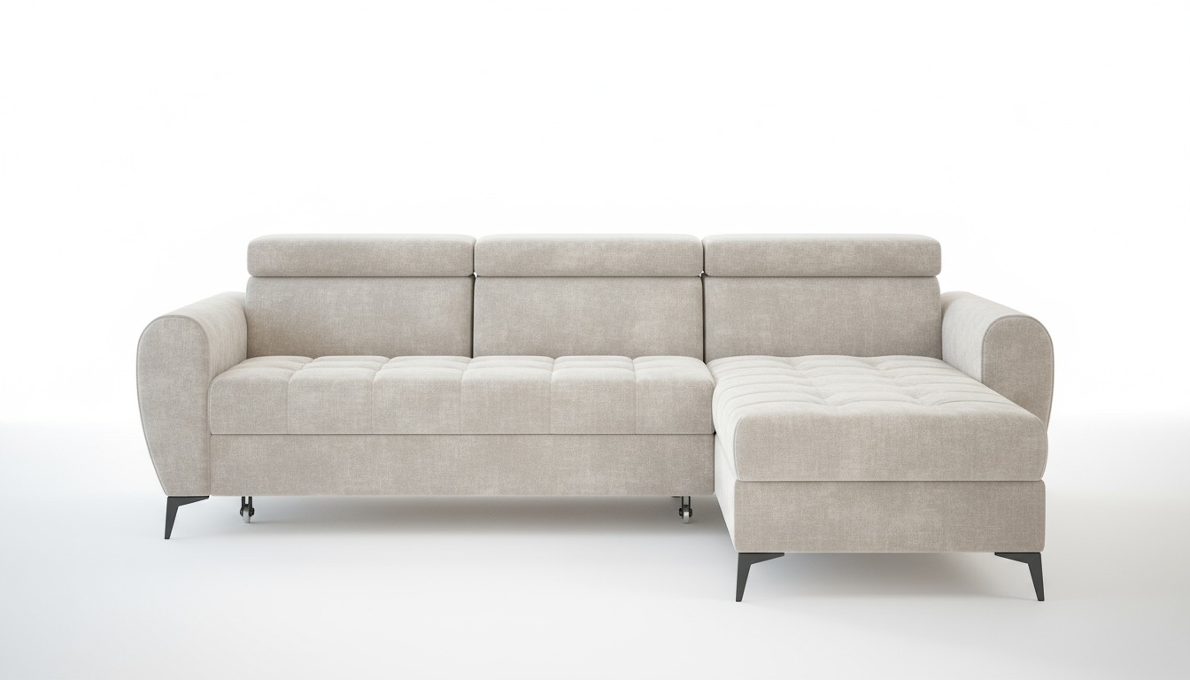 Narożnik został stworzony z myślą o codziennym komforcie. Siedzisko wypełnione sprężynami falistymi i pianką zapewnia optymalne podparcie. Dlatego jest idealnym miejscem na popołudniową drzemkę lub wieczorny seans filmowy. Z kolei regulowane zagłówki pozwalają dopasować wysokość oparcia do indywidualnych potrzeb. W ten sposób każdy domownik znajdzie dla siebie najwygodniejszą pozycję do odpoczynku.