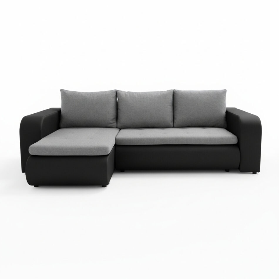 Uniwersalny, szaro-czarny narożnik Brooklyn wnosi do mieszkania atmosferę ponadczasowej elegancji i funkcjonalności. Staje się centralnym punktem salonu, idealnym do relaksu w samotności lub spędzania czasu z najbliższymi.