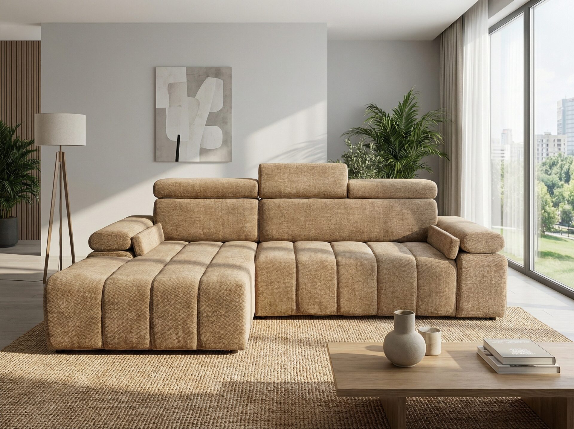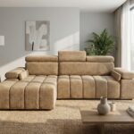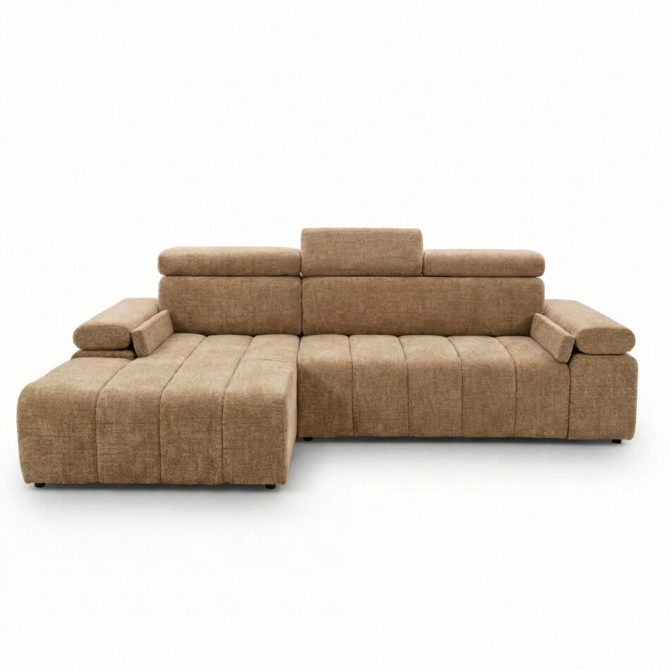 Narożnik z funkcją spania Calm lewostronny L-kształtny jasnobrązowy szenil