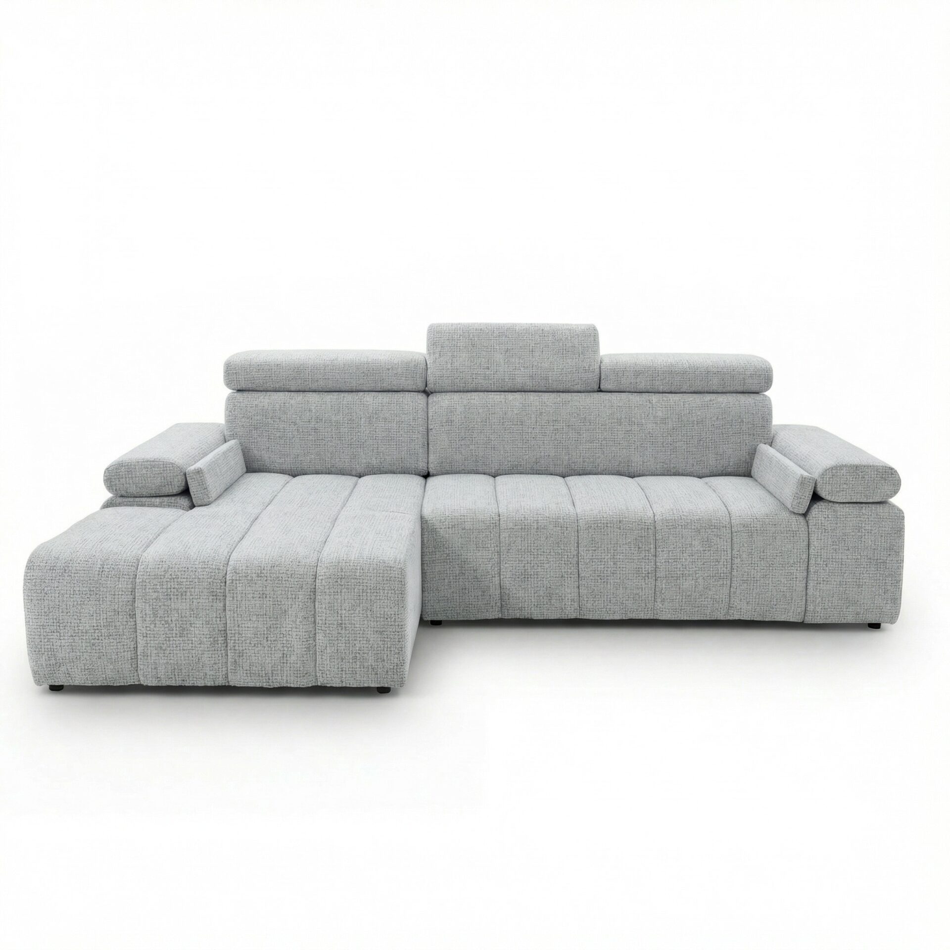 Narożnik z funkcją spania Calm lewostronny L-kształtny jasnoszary szenil