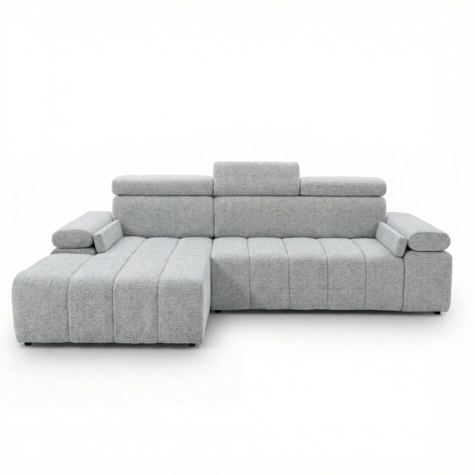 Na szczególną uwagę zasługują regulowane zagłówki oraz podłokietniki, które pozwalają dopasować ustawienie mebla do indywidualnych potrzeb użytkownika – zarówno podczas siedzenia, jak i relaksu w pozycji półleżącej. Komfort użytkowania podnoszą również modne przeszycia, które nadają całości charakteru i podkreślają nowoczesny styl narożnika.