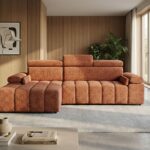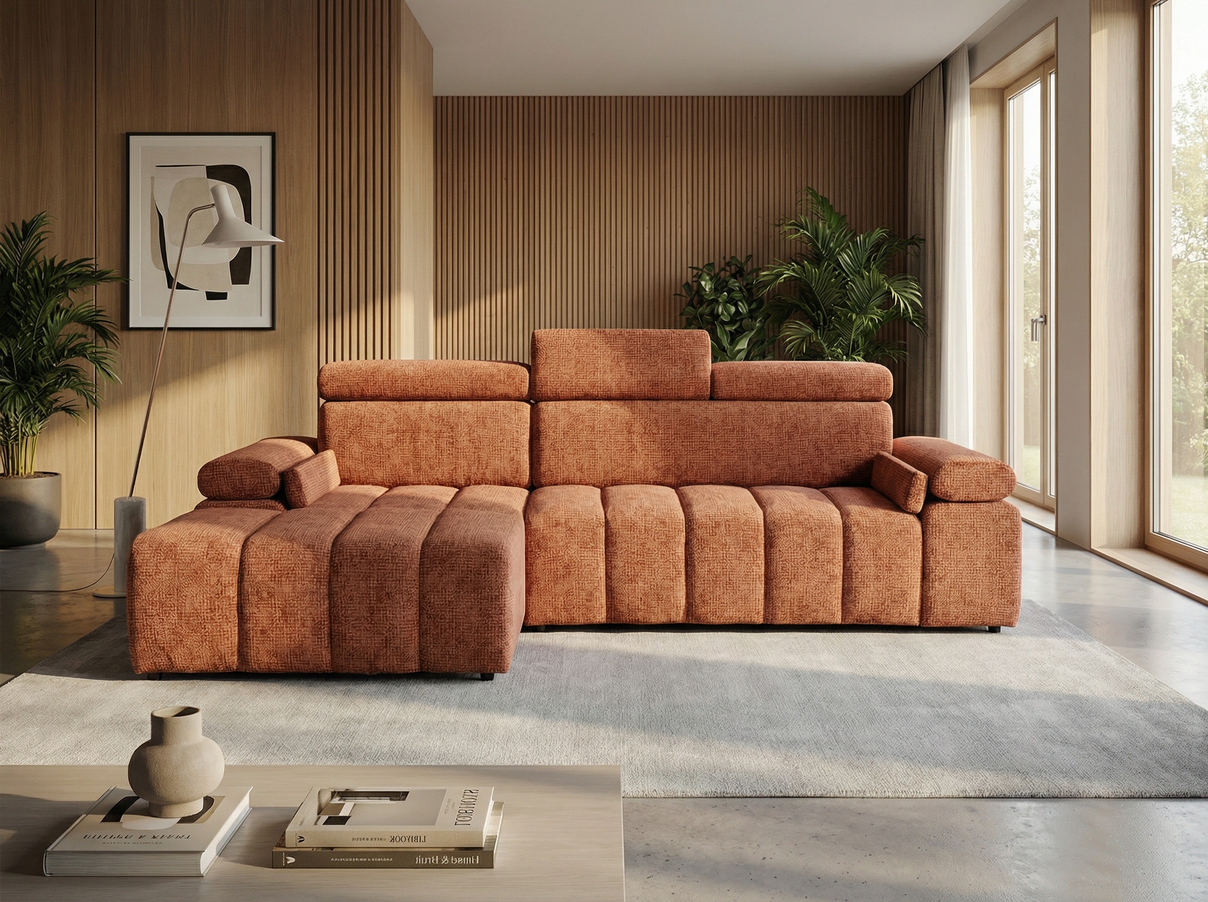 Narożnik z funkcją spania Calm lewostronny L-kształtny miedziany szenil
