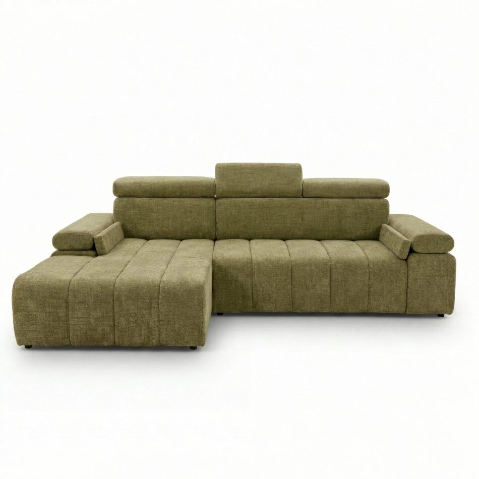 Narożnik z funkcją spania Calm lewostronny L-kształtny oliwkowy szenil